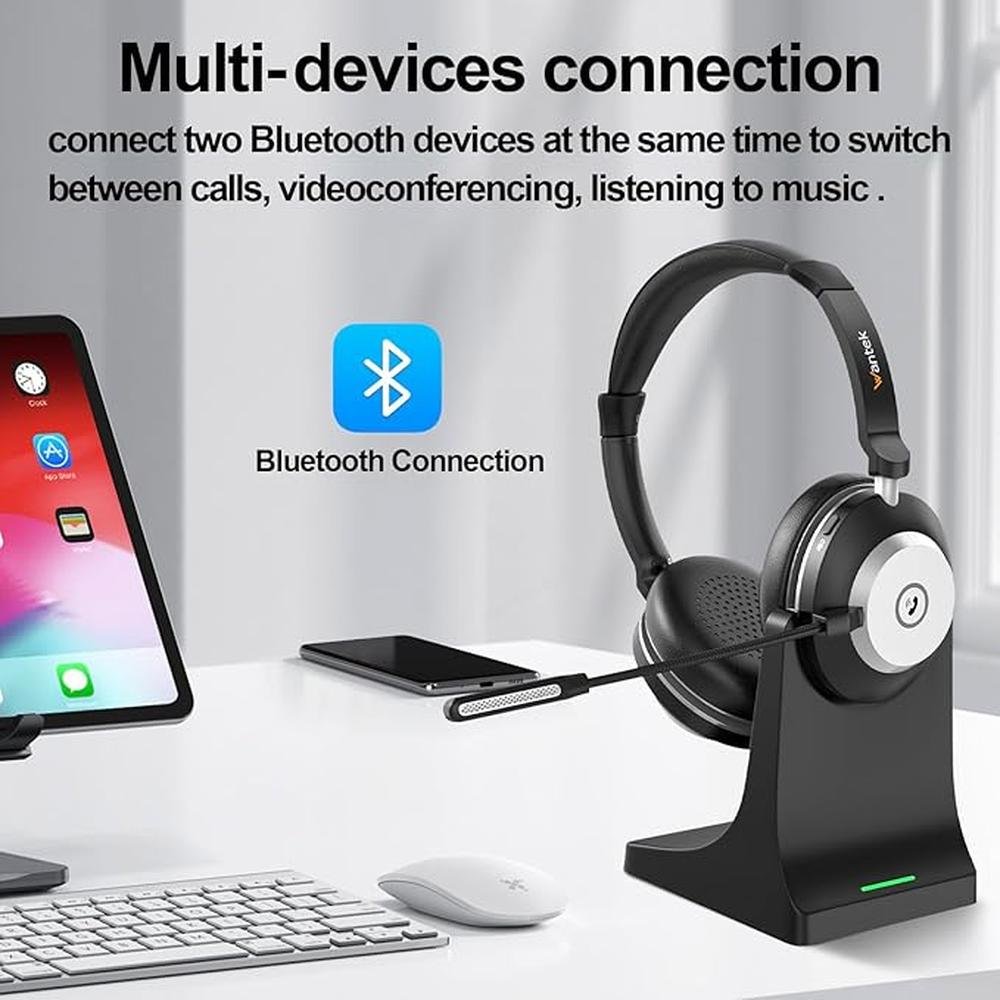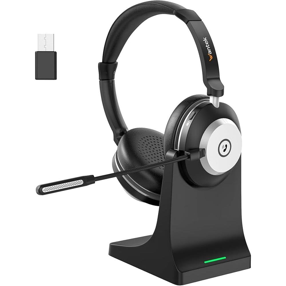 Wantek Wireless Headset with Mic- USB & Bluetooth Connectivity, 50-Hour Battery Life, AI Noise Cancelling Adjustable Microphone Charging Dock, Comfort Fit for Home/Office/Mobile Phone
