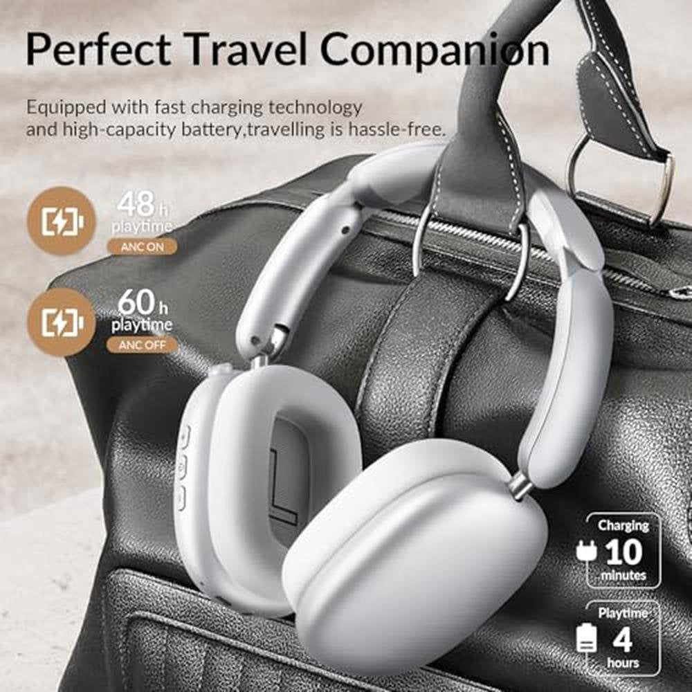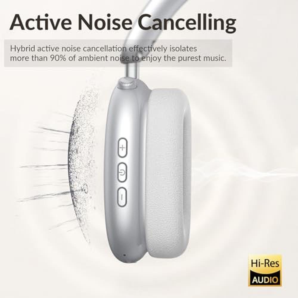 Wentronic Y02 Active Noise Cancelling Headphones,60H Battery,5 EQ Music Modes,Hi-Res Audio,Deep Bass,Foldable Wireless Over Ear Bluetooth 5.4 Headset,Breathable Leather Earpads (Silver)