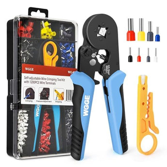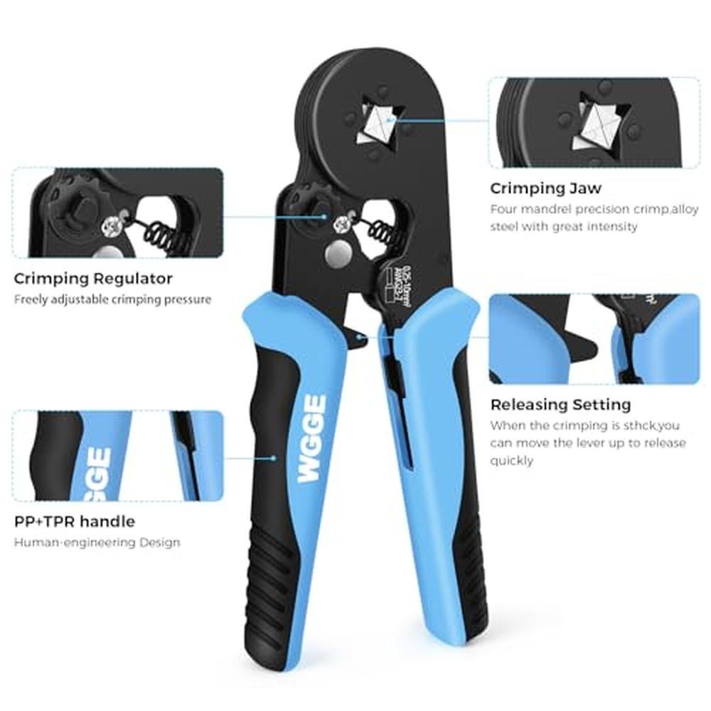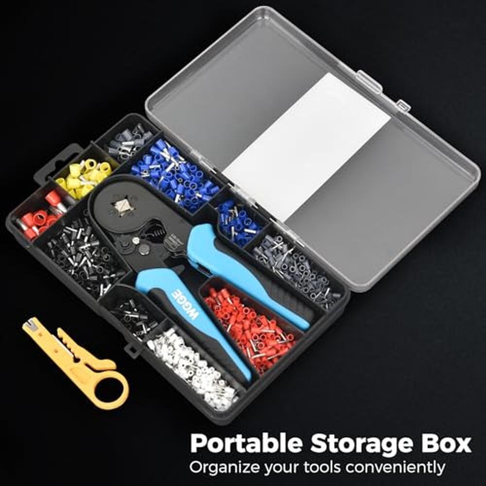 WGGE Ferrule Crimping Tool Kit, AWG 23-7 Self-adjustable Ratchet Wire Ferrule Crimper Plier Set with 1200pcs Wire Terminals Crimping Connectors Wire Ends Ferrules