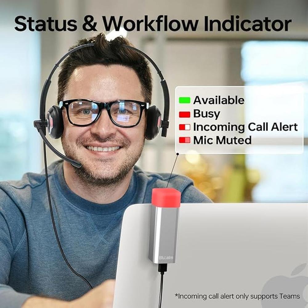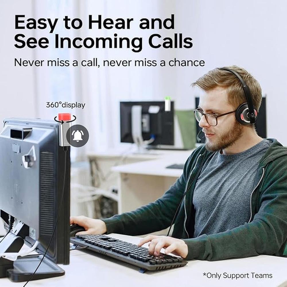 Wired Headset with Busylight Indicator, Noise Canceling Headphones with Microphone/Status Light, USB Black On-Ear Computer Headset with in-line Control for Work/Call Center/Home/Hybrid Office