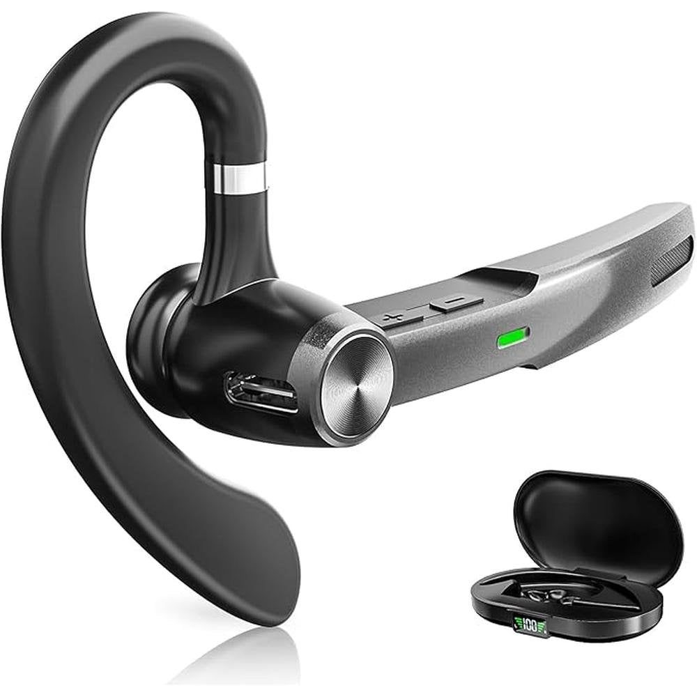 Wireless Bluetooth Headset with Built-in Mic 400mAh Display Charging Case for PC Computer, Laptop, Cell Phones, Remote Work, Call Center, Trucker Work, Business