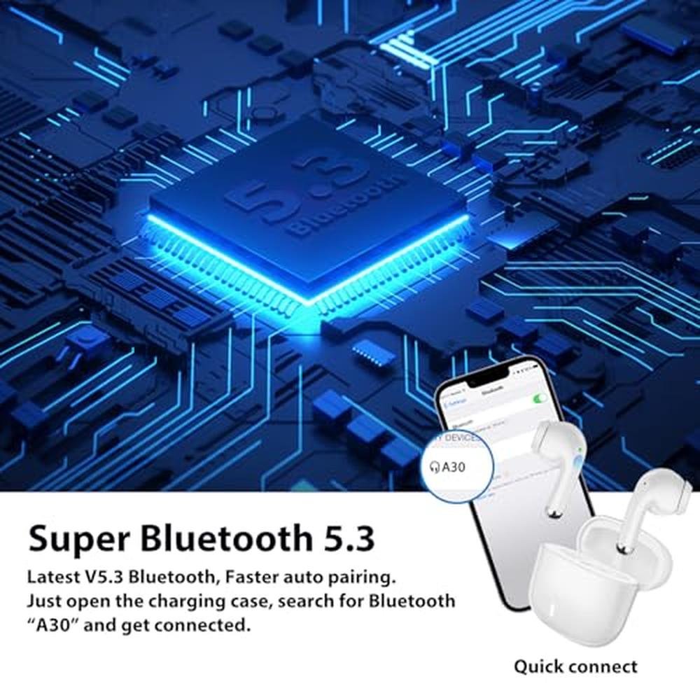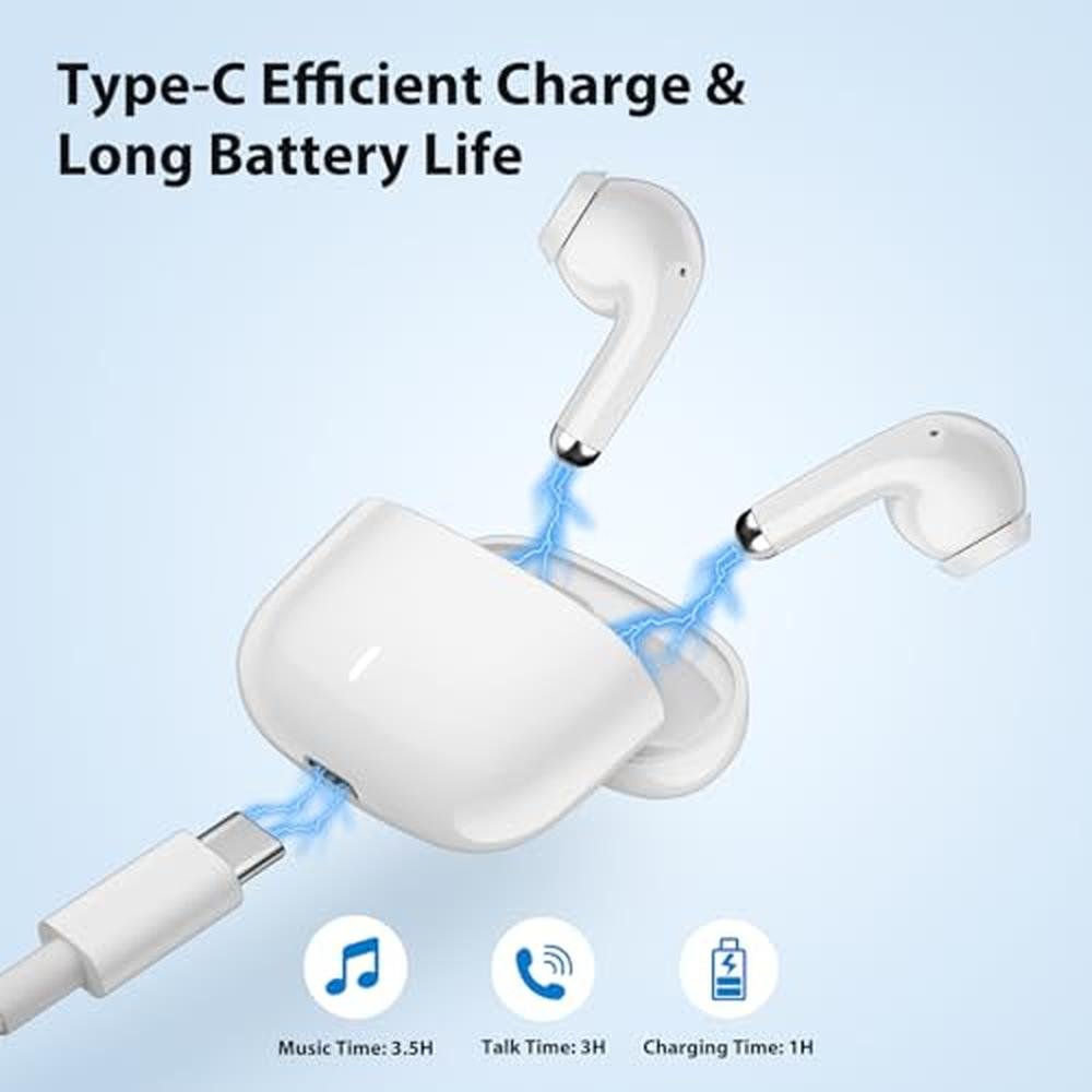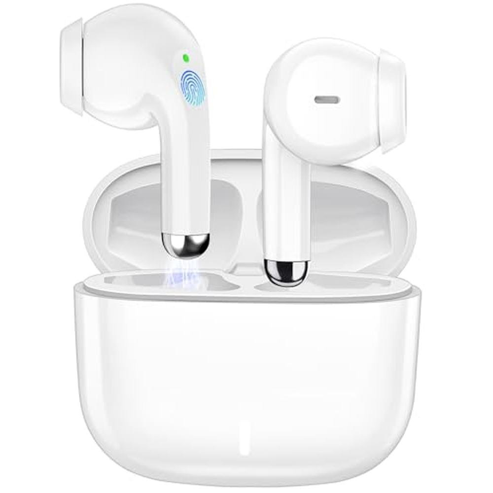 Advanced Bluetooth 5.3 and Wide Compatiblity: This wireless earbuds adopts the latest bluetooth 5.3 version that supports various devices with Bluetooth like smartphones, tablet, PC, compatible with iPhone 15 Pro Max 15 Pro 15 Plus 14 Pro Max 14 Pro 13 Pro 13 Mini 12 Pro Max 12 Mini 11 Pro Max XR XS 8 7 for Samsung Galaxy S23 S23+ S23 Ultra Z Flip 5 4 Fold 5 4 S21 FE S21+ S21 Ultra for iPad Tablet PC MP3 MP4 or other devices with Bluetooth. Smart Touch Control and One-step Pairing: Bluetooth Earbuds with intelligent touch control button is multifunctional, such as play music, answer the call and activate Siri. Effortlessly manage audio playback & calls with high-sensitivity touch sensors and microphone. Pick up the two headsets from the charging case, and they will be paired automatically. Ergonomic Design: Wireless Bluetooth Headset adopt a special ergonomic semi-in-ear structure design to achieve a perfect fit with the auricle. Effectively prevent sound leakage and noise isolation, also prevent falling off and provide long-lasting comfort. Light weight earbuds won't burden your ears. Come with a headphone storage case, it's more convenient to carry. Digital Call Noise Reduction: Adopts with the call noise reduction function that high-end headphones have, intelligently personalize noise reduction and sound performance for your ears, You can hear the voice of others clearly in real time, and have a smooth conversation with people, avoiding loud sound brings bad call effect. Superior Sound Quality: True wireless earbuds with microphone well balanced with bass and clear treble to create a rich high-fidelity sound experience. Makes the sound played by the earphones much more beautiful and pleasant, suitable for indoor and outdoor exercise, you can enjoy your music everywhere even in a loud environment. Remember to full charge firstly when you receive the charging case and earbuds.