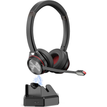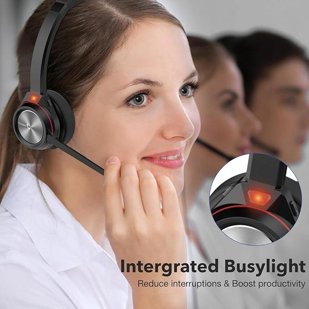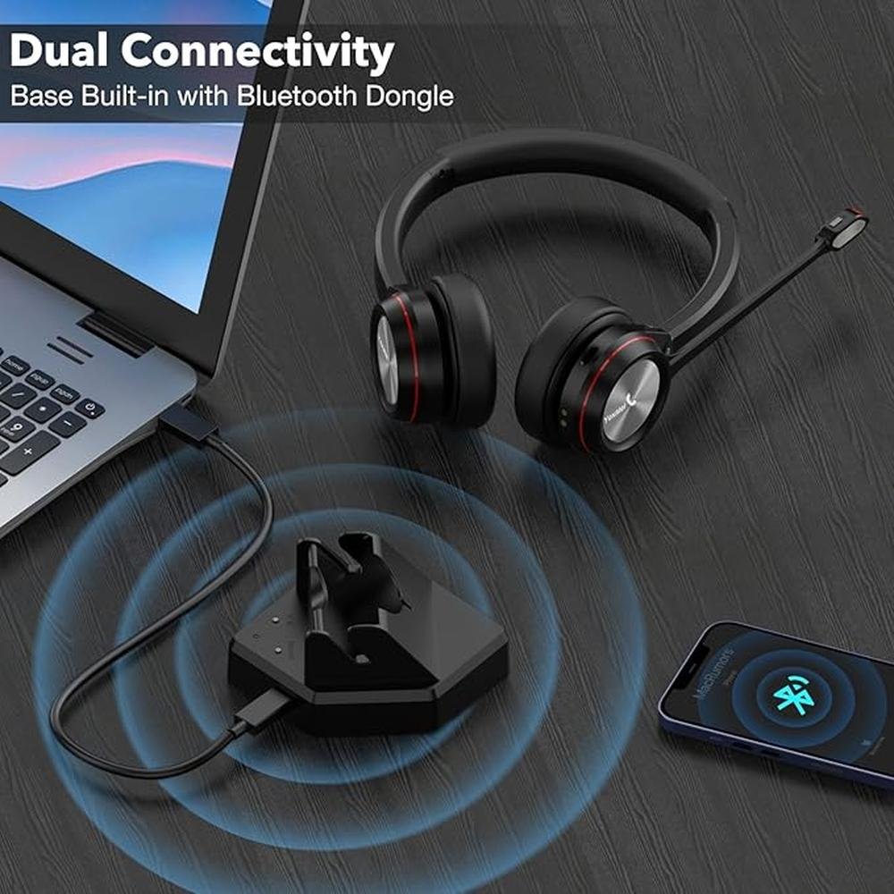 Wireless Headset with Noise-Canceling Mic & 40H Talk Time, Bluetooth Office Headset for Teams/Zoom/3CX, Fast-Charging Stand, Mic Mute, Lightweight Design (Y891BTD)