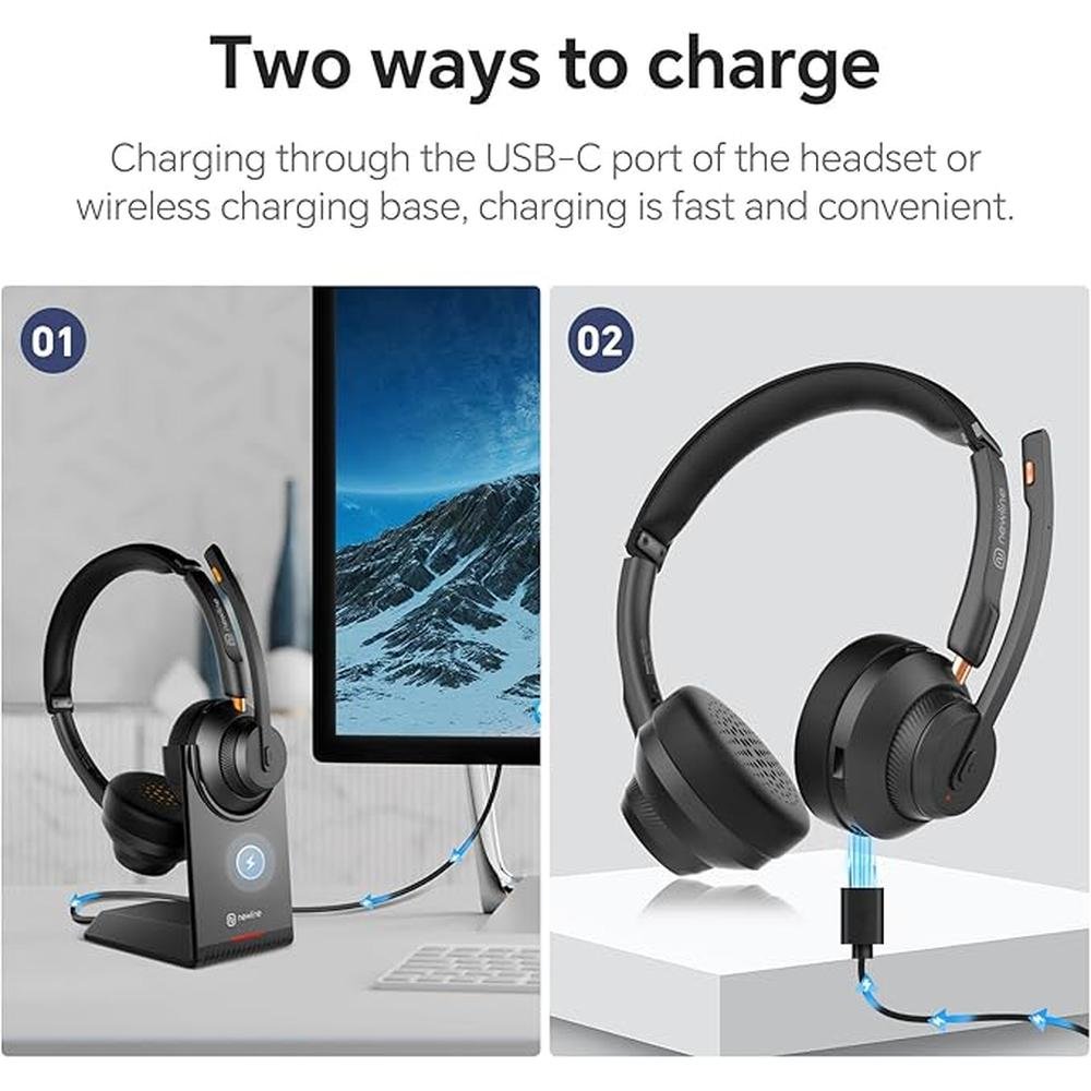 Wireless Headsets, Conferencing Headset w/AI Noise Cancelling, Charging Base, Bluetooth Headset with Mic for Office, PC, Mobile Phone, Suitable for Zoom, Teams, Skype etc