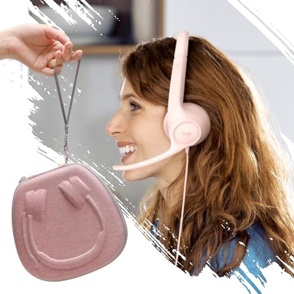 XANAD Hard Case for Logitech H390, H430, H570e, Zone 300, Zone 301 or JLab Go Work, JIAMQISHI, EAGLEND, FEABASK Wired Headset Stereo Headphones with Noise Cancelling Mic Headphones - Pink Grey