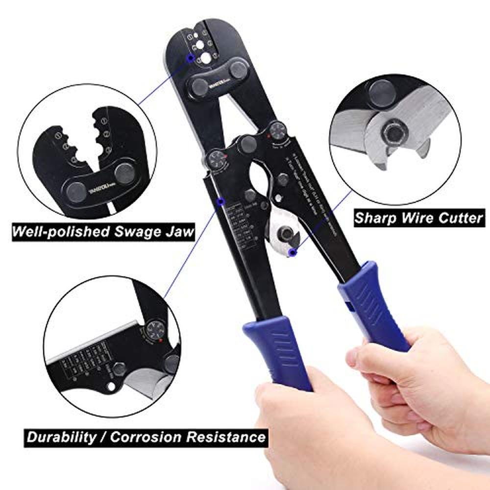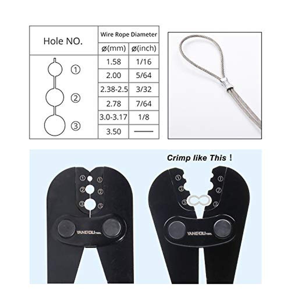 Yangoutool Wire Rope Crimping Tool, Wire Rope Crimper and Cutter for Aluminum Oval Sleeves, Stop Sleeves, Crimp Ferrules, Crimping Loop Sleeve.