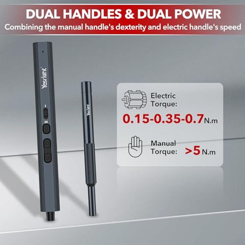- 155 IN 1 SCREWDRIVER SET: YesRight Precision Screwdriver Set includes 2 screwdrivers: 1 electric screwdriver to make your repair work easier and more efficient; 1 manual precision screwdriver for projects that require more torque, meeting your different work needs. 140 precision bits for most electronics, This screwdriver set electric is a must-have for IT technicians, PC builders, and professional fixers