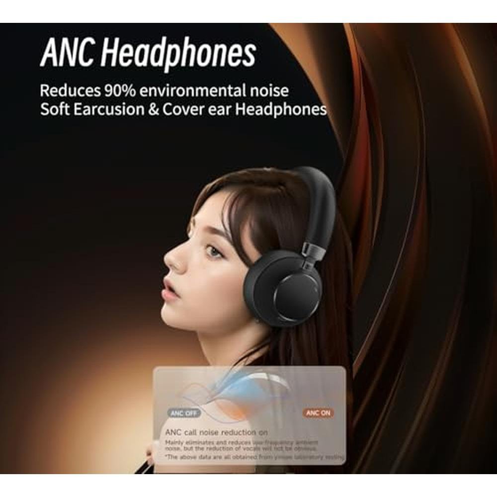 YUSONIC Active Noise Cancelling Headphones, ANC 01 Bluetooth Headphone,Over Ear Wireless Headphones with CVC08 Microphone for Teenger Adult Office Home Learning Travel Phone Music uses (Black)