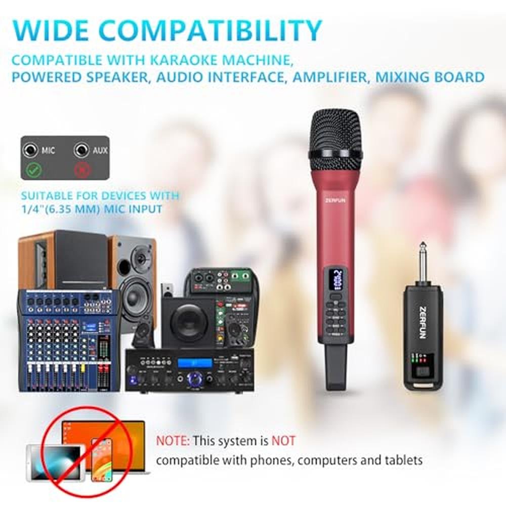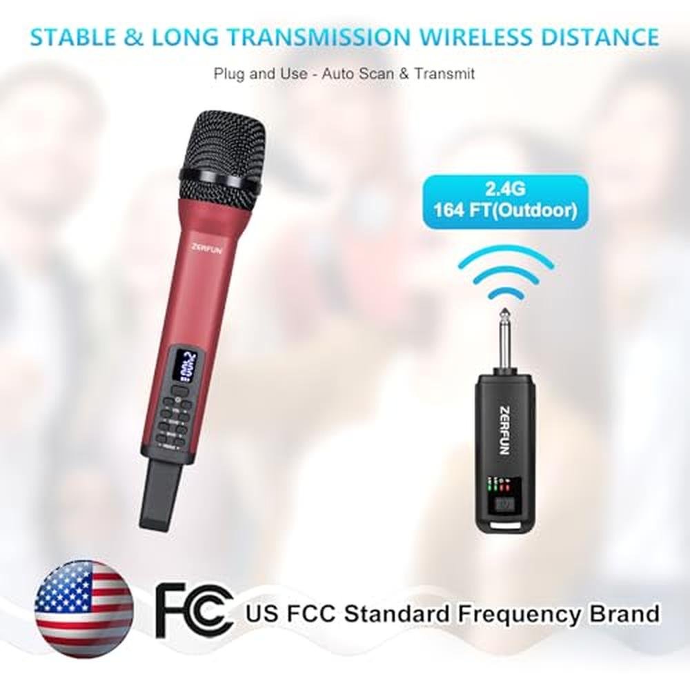 • TRANSMISSION RANGE: The ZERFUN Cordless Microphone can support up to 164 feet range(Outdoor). The 2.4Ghz frequencies range are compliant with the FCC regulations.