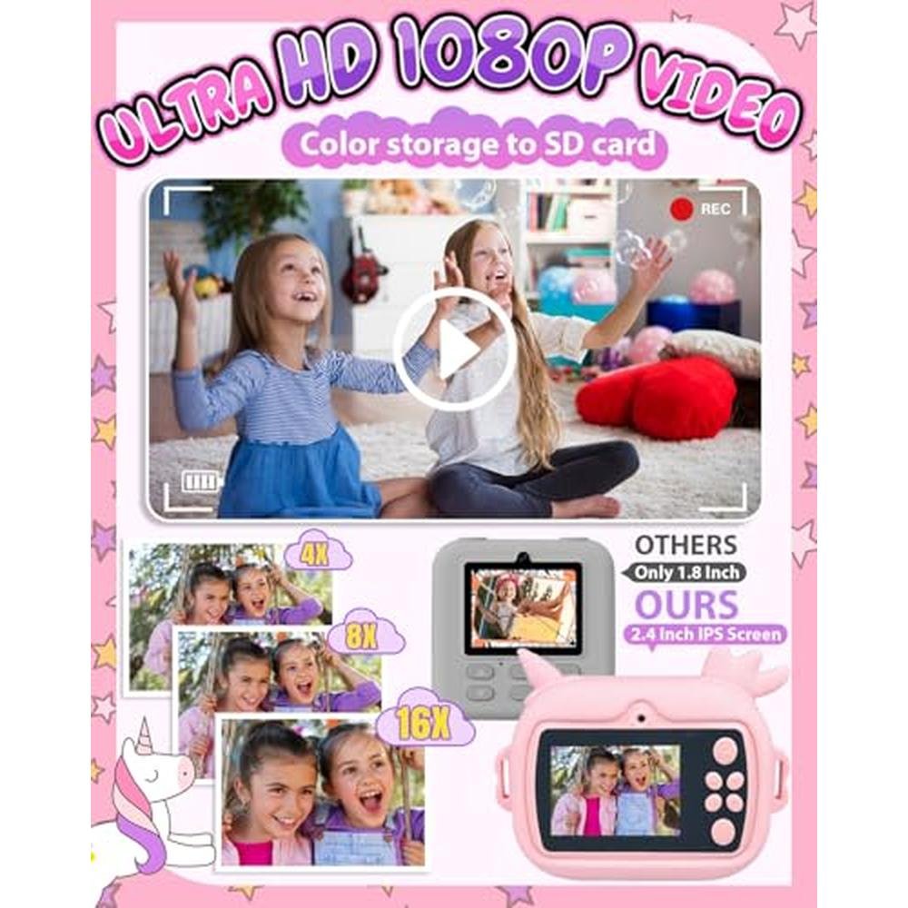 Kids Camera Instant Print, 1080P Kids Instant Cameras with Photo Printing and Fun Learning, Christmas Stuffers Birthday Gifts for Girls Age 3-12, Portable Toy for 3 4 5 6 7 8 9 10 Girls Boys, Pink