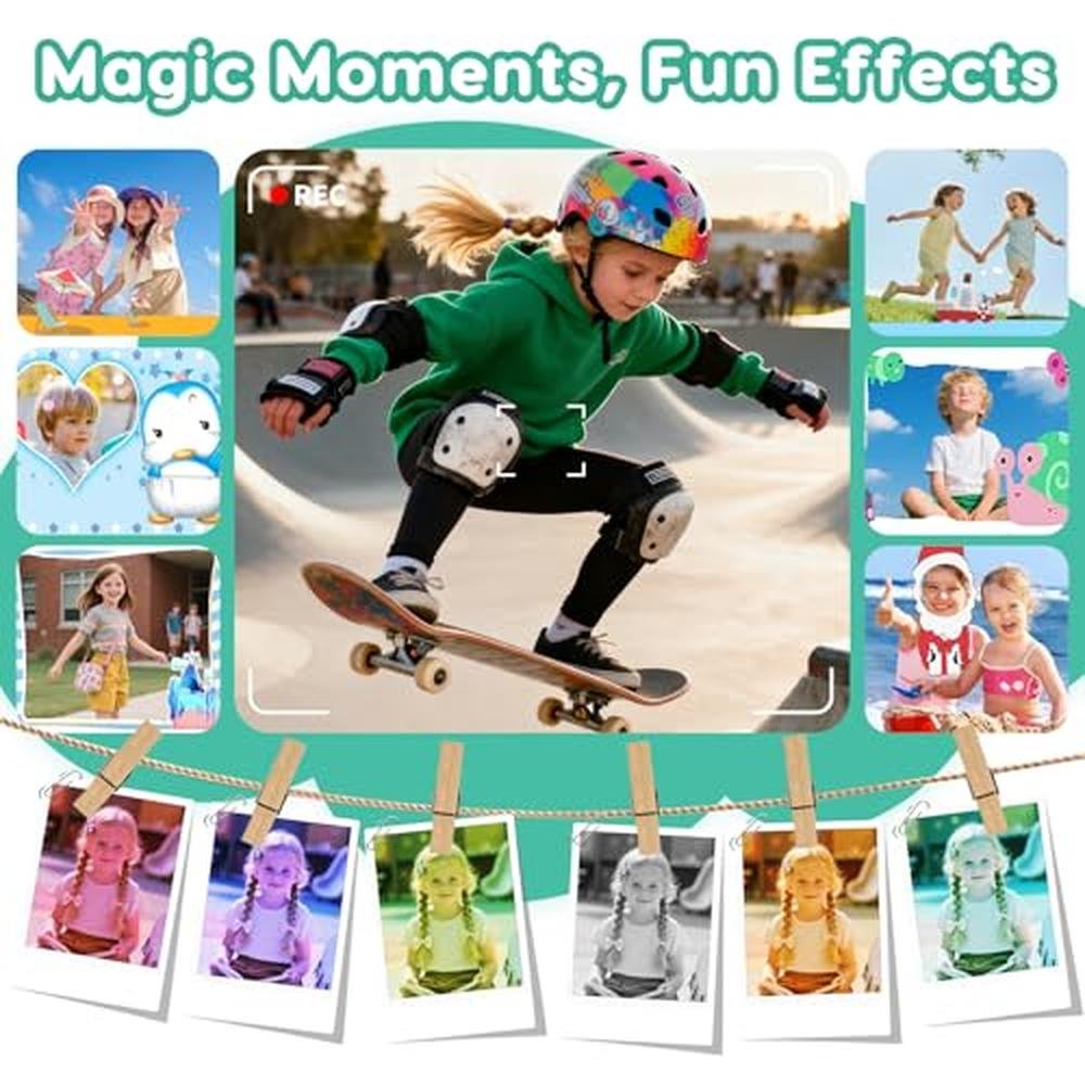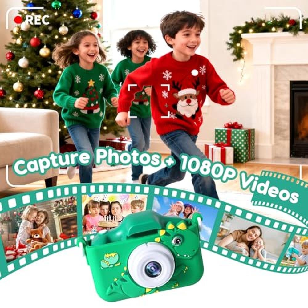 Bring endless fun and creativity to your little ones with this kids camera a perfect birthday gift for boys and girls ages 312. Specially designed for small hands, this toddler camera is simple to use, safe, and packed with entertaining functions. Whether its for everyday play, travel, or a Christmas gift for grandkids, this camera will turn every moment into a precious memory. 1080P Dual Lens & Selfie Mode This kids digital camera is equipped with dual front and rear lenses, supporting 1080P HD photo and video recording. The selfie timer and 2.0-inch IPS screen make it easy for children to capture clear, colorful photos with friends and family. Its the perfect starter camera for young photographers ages 39. More Than Just a Toy Camera This multifunctional camera for kids offers photo and video shooting, music playback, video viewing, and built-in educational games. Ideal for both boys and girls, its great for indoor play, outdoor adventures, classroom rewards, or kids travel toys. Safe, Durable & Easy to Use Made with soft silicone, this camera is safe and comfortable for little hands. Its impact-resistant, lightweight, and easy to carry for boys and girls aged 46, 57, and beyond. The built-in 400mAh rechargeable battery lasts up to 3 hours, making it perfect for uninterrupted playtime. Includes 32GB SD Card & USB Cable No need for extra purchases this toy camera includes a 32GB SD card that can store thousands of photos and videos. Easily transfer files to a computer using the included USB cable, letting kids share their happy moments with family and friends. Perfect Gift for Kids Ages 312 Whether youre looking for toys for 4 year old boys, gift for 5 year old boy, or quiet fidget toys for kids, this camera is an excellent choice. Its a great Christmas gift, birthday gift, or classroom reward for boys and girls. Encourage creativity, imagination, and fun with one simple toy!