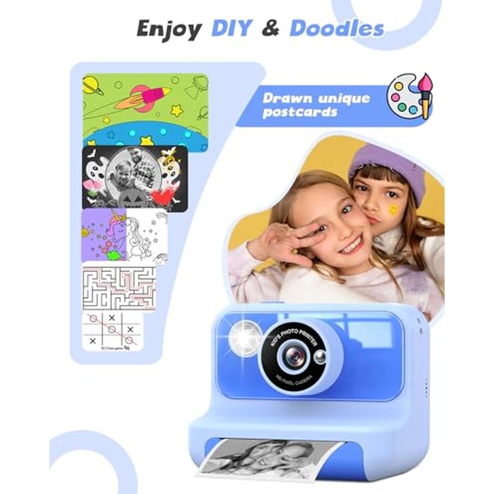 This instant print camera is specially designed for kids, combining photo shooting, video recording, and high-quality instant printingcapturing every precious moment with ease. Featuring built-in doodle templates and fun stickers, kids can print their favorite designs and color them by hand, unlocking endless creativity. Ideal for boys and girls aged 3 4 5 6 7 8 9 10 11 12, this puzzle toy blends shooting, entertainment, and creativity. It makes a perfect gift for birthdays, Christmas, Easter, Thanksgiving, New Year, back-to-school, Valentines Day, Children's Day, as well as for holiday trips or everyday playtime.