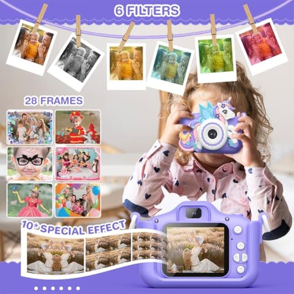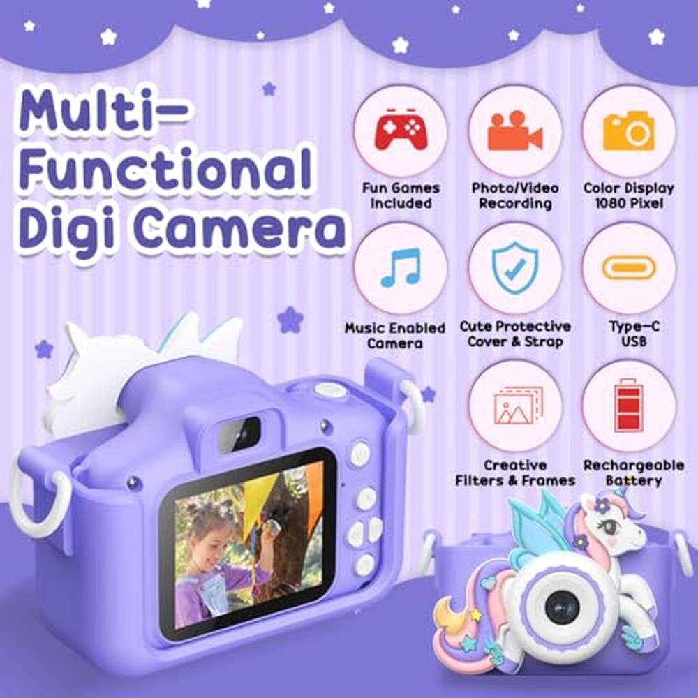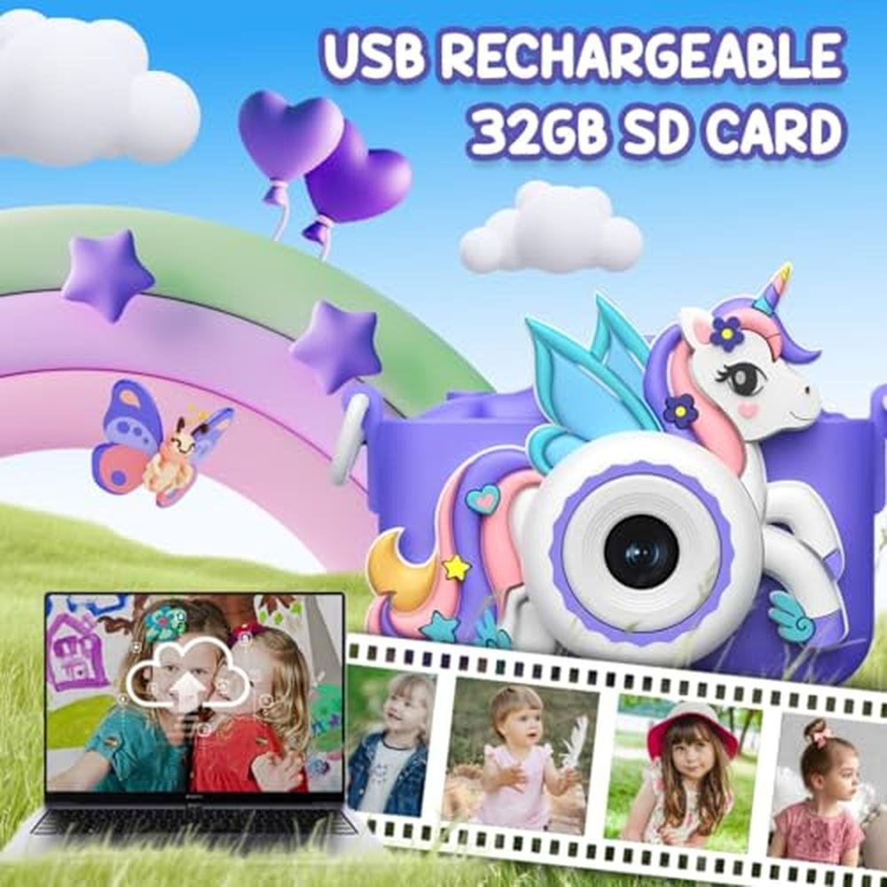 Wembley Unicorn Toys Camera for Kids 3+ Year Old Girl for Kids Toys Boys Cool Birthday Gift 32GB SD Card 1080P HD Video Cute Selfie Digital Toddler Camera Age 3 4 5 6 7 8 - Purple