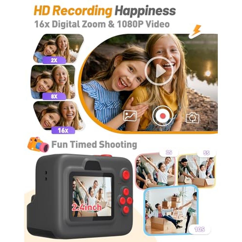 - Mulit-Funtion Kids Camera : Yehtta kids instant camera is equipped with a 2.4-inch IPS screen, clear 1080P high resolution video, 16x digital zoom, flash light, black and white instant prints, color photo shooting, continuous shooting, time-lapse, and filters, as well as a built-in MP3 player and 4 fun kids' puzzles to capture the exclusive tones of your childhood with the kids instant camera. We see the world through the eyes of a child, super fun and worth remembering