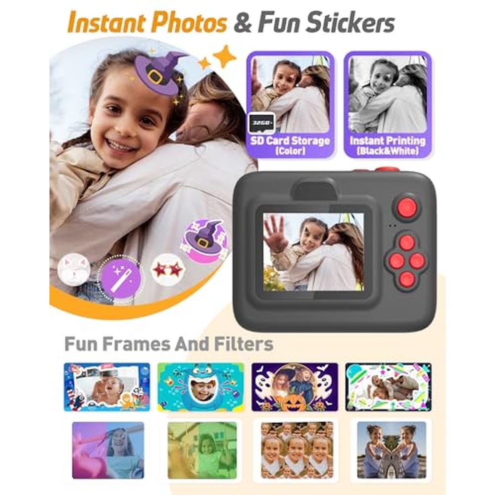 - Black & White Thermal Printing Function : Kids instant camera adopts advanced inkless printing technology, equipped with 3 rolls of photo thermal printing paper(one of the rolls of paper has been placed in the camera paper slot), which can print about 300 photos (the print paper can be replaced with a new one when it runs out), it can automatically set the printing consistency , support cardless printing, thermal printing, instant printing. Let kids have their own kids camera, look forward to their precious memories of the wonderful moments captured with the kids instant print camera