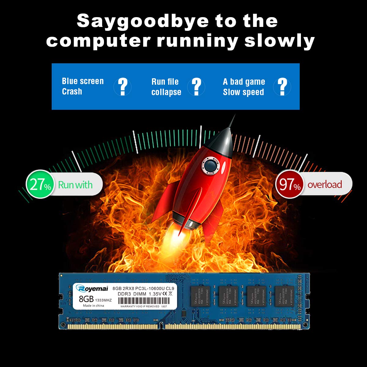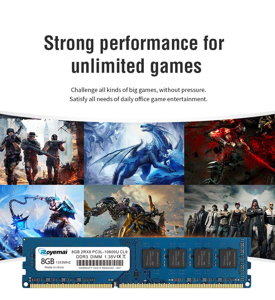 8GB DDR3L RAM | Royemai 10600U 1333MHz | High-Performance Desktop Memory Module