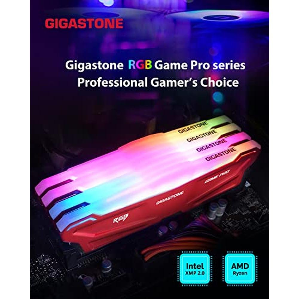 RGB DDR4 RAM GIGASTONE Game PRO 16GB Kit (2x8GB) DDR4-3200MHz PC4-25600 CL 16-20-20-40 Intel XMP 2.0 AMD Ryzen 1.35V UDIMM 288 Pin Unbuffered Non ECC High Performance Gaming Desktop Memory - Red