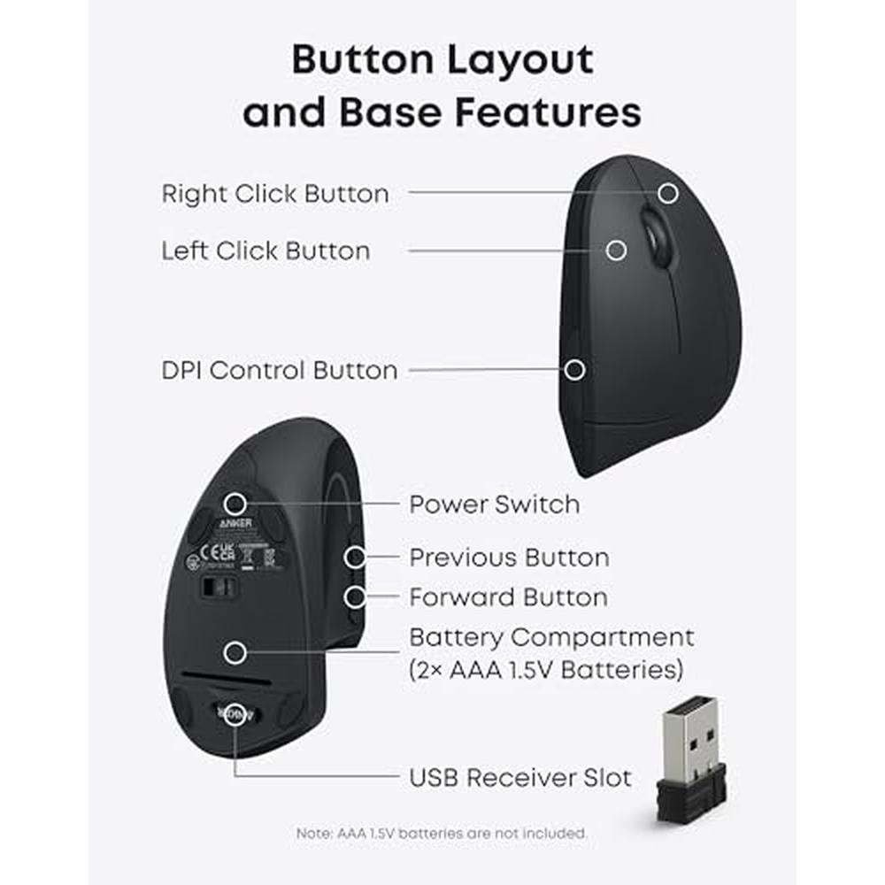 High-Performance Anker 2.4G Wireless Vertical Ergonomic Optical Mouse for Work and Entertainment