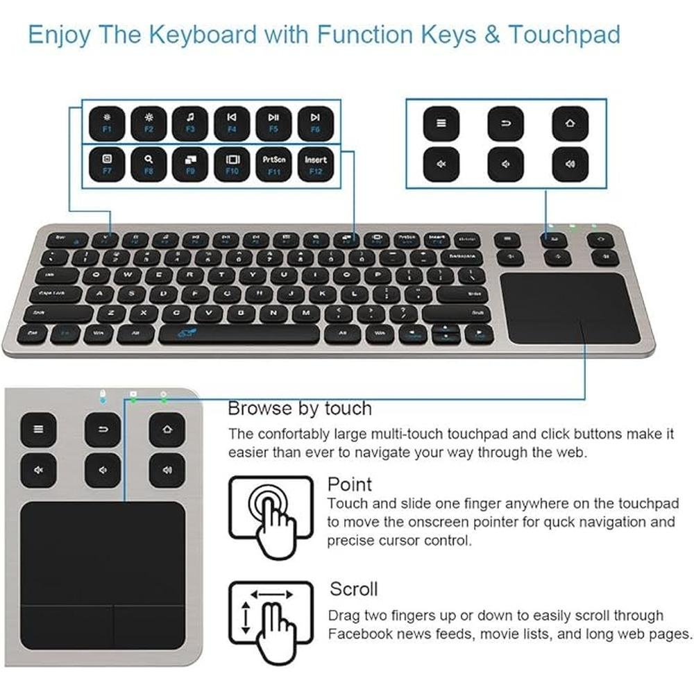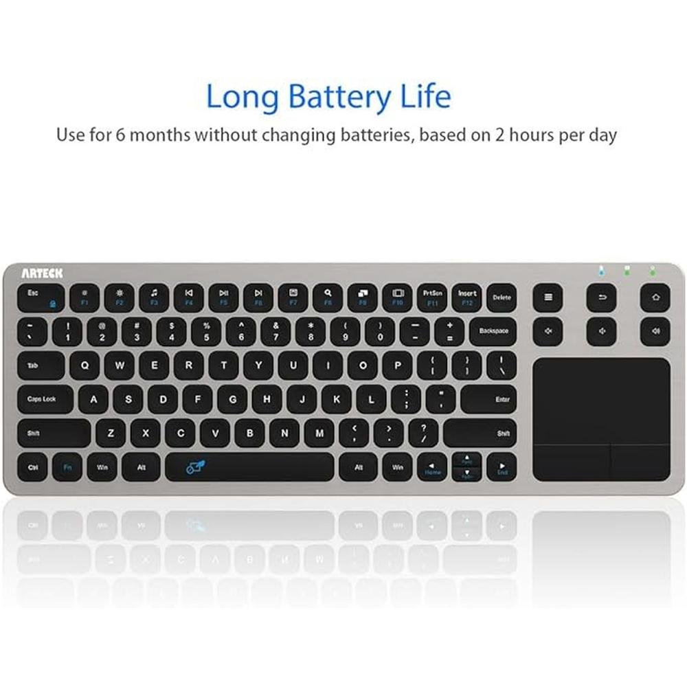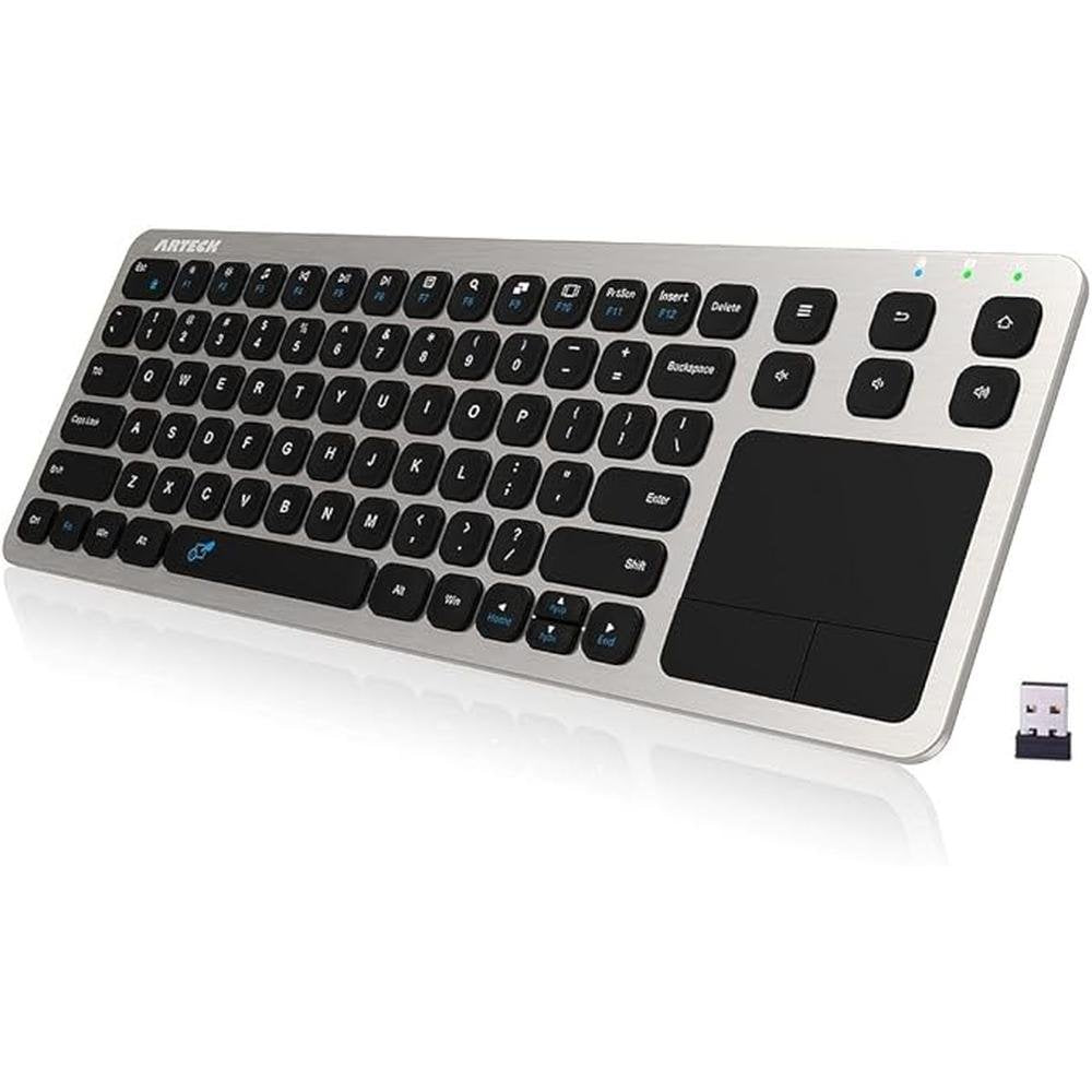 Arteck Keyboard | Arteck 2.4G Wireless Touch TV Keyboard with Easy Media Control and Built-in Touchpad Mouse | Ultra-Compact Full-Size Keyboard for Connected Computer Smart TV HTPC