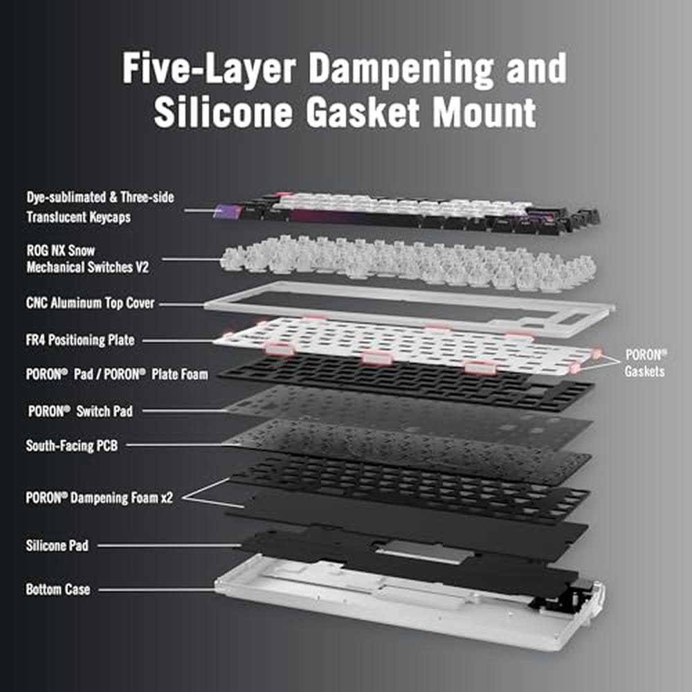 - Hot-swappable pre-lubed ROG NX V2 Snow Linear Switches provide a tactile and responsive typing experience