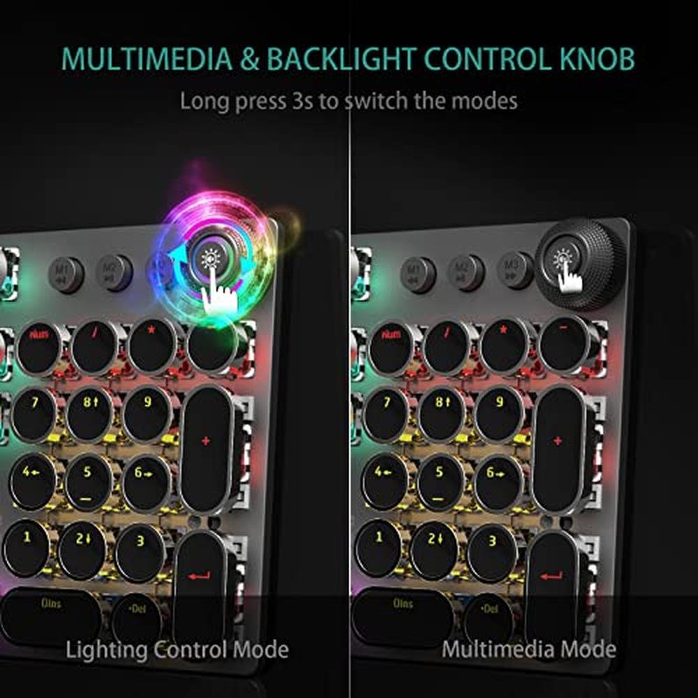 - The round keycaps are made with a durable two-color injection molding process, ensuring clear and fade-resistant font