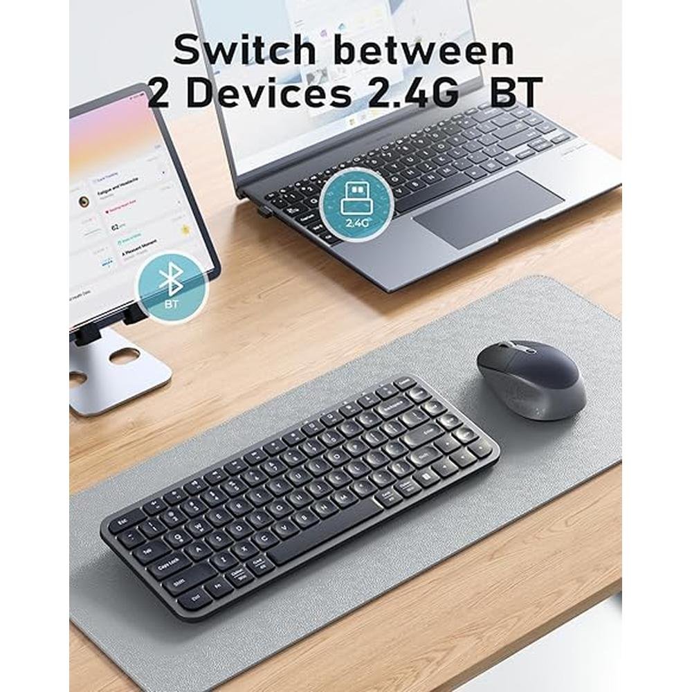 Bluetooth Keyboard | VSSoplor Compact Multi-Device Wireless Keyboard Mouse Combo Set | 2.4G Bluetooth Portable Keyboard for Laptop iPad Tablet
