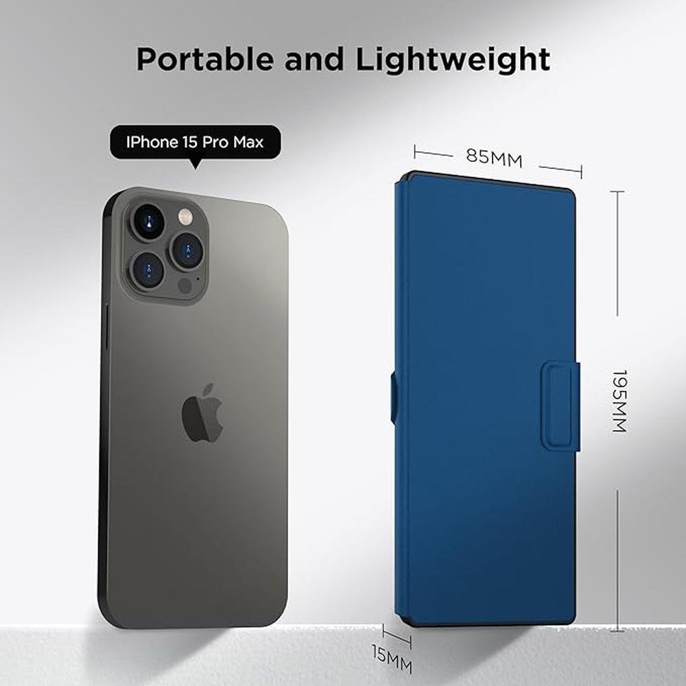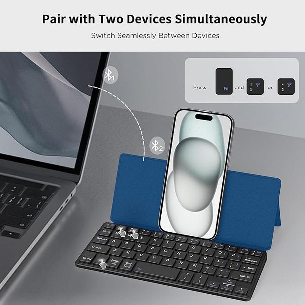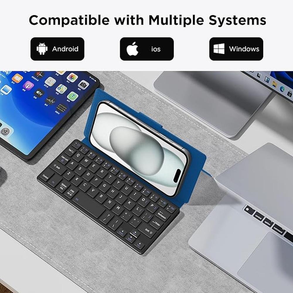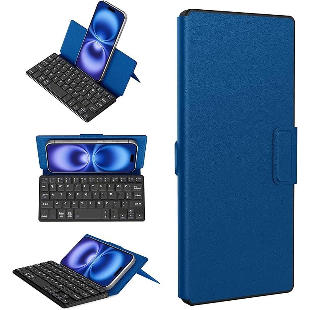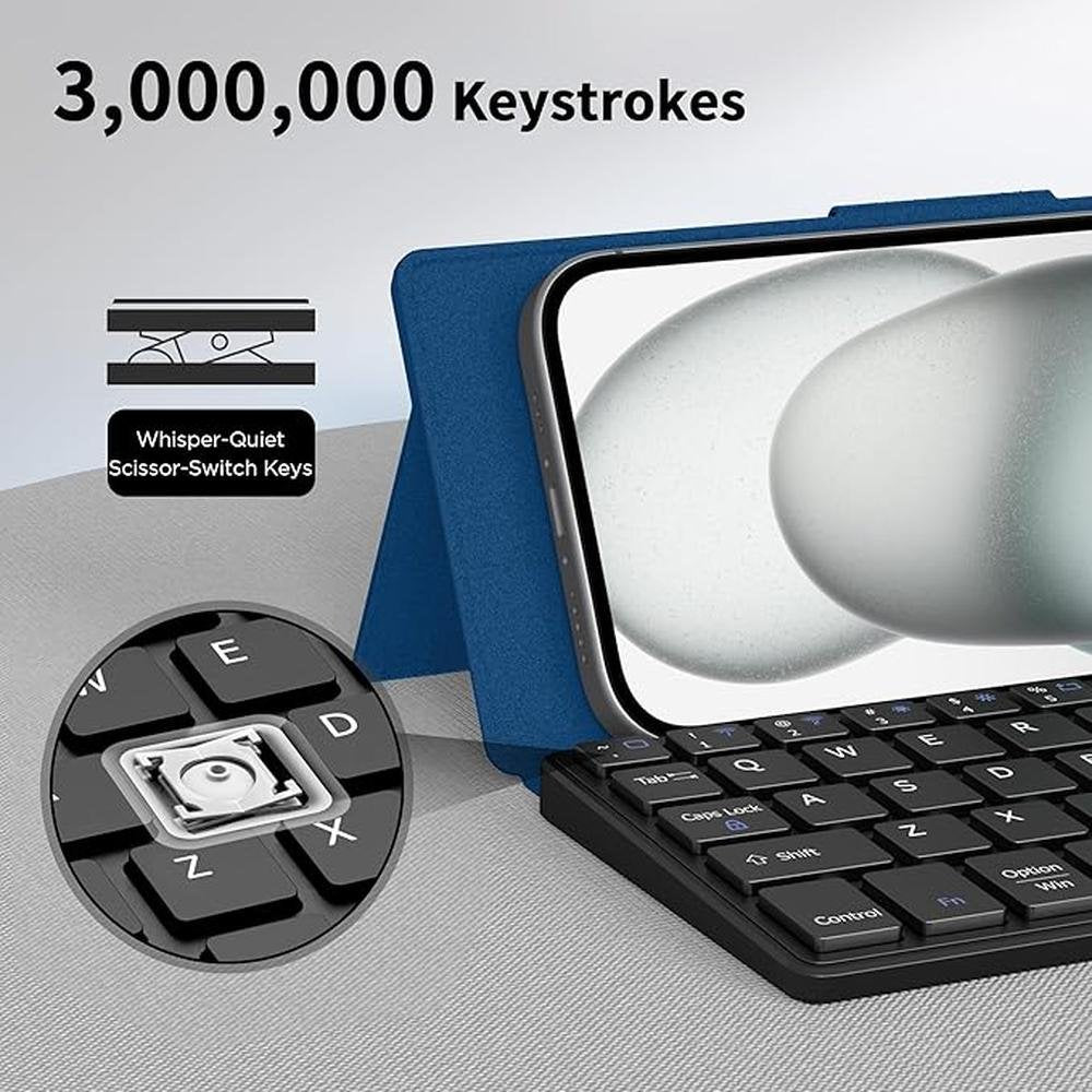 Keyboard Stand | Cacoe Wireless Keyboard with Stand Mini Keyboard for Cell Phone Ultra Slim Portable Foldable Dual Channel QWERTY with Stand Holder for Smartphone and More iOS Android Windows Ocean Blue | Premium Luxury