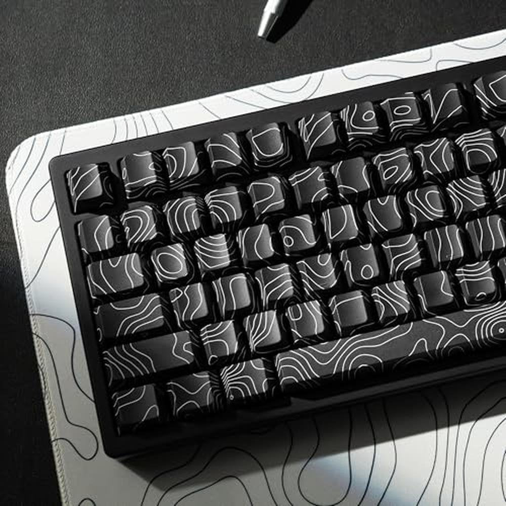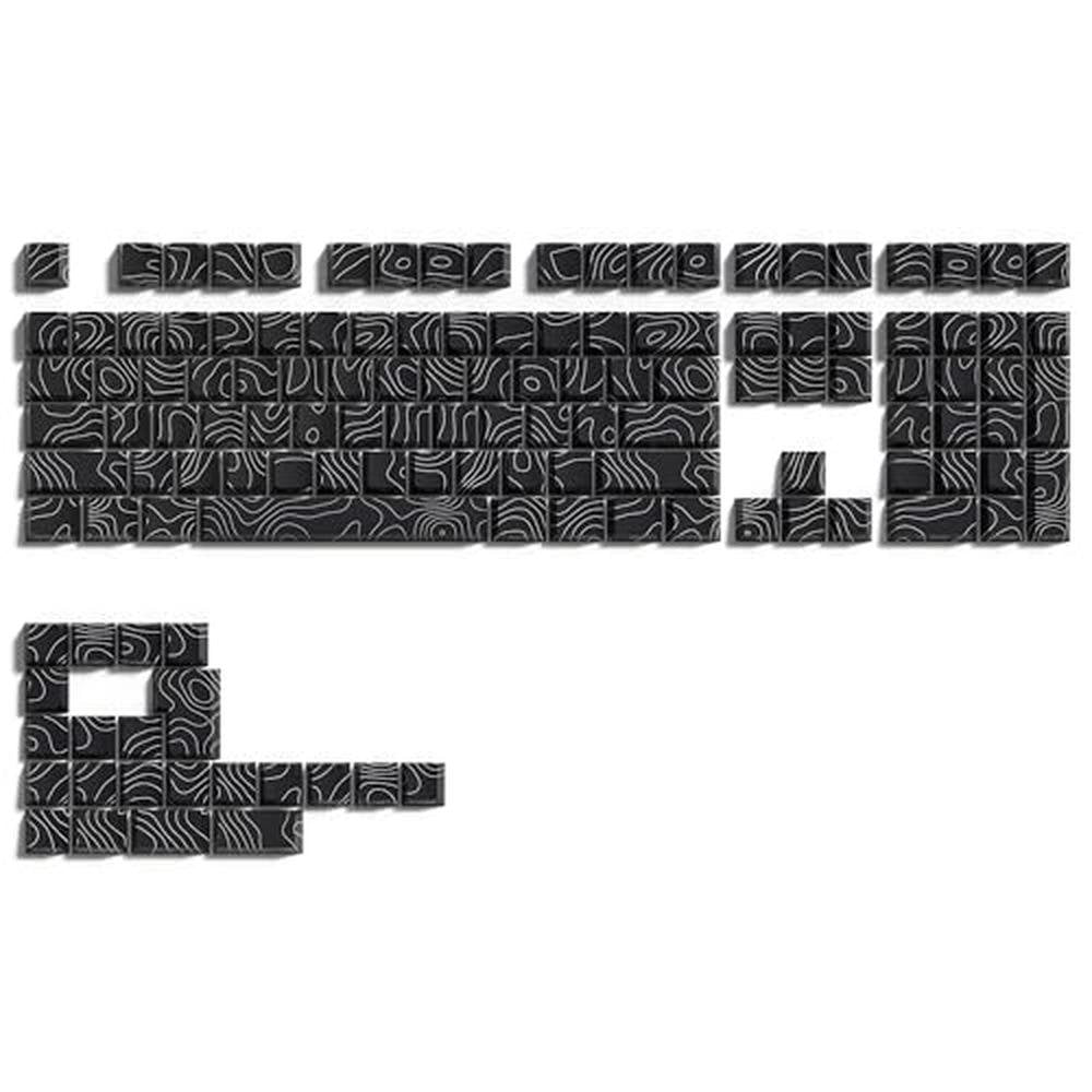 dagaladoo Black Topographic keycaps Double Shot PBT keycaps Shine Through Keyboard Keys Side Printed Key caps Cherry Profile Custom keycap Set for100%, 75%, 65%, 60% US Layout Mechanical Keyboard