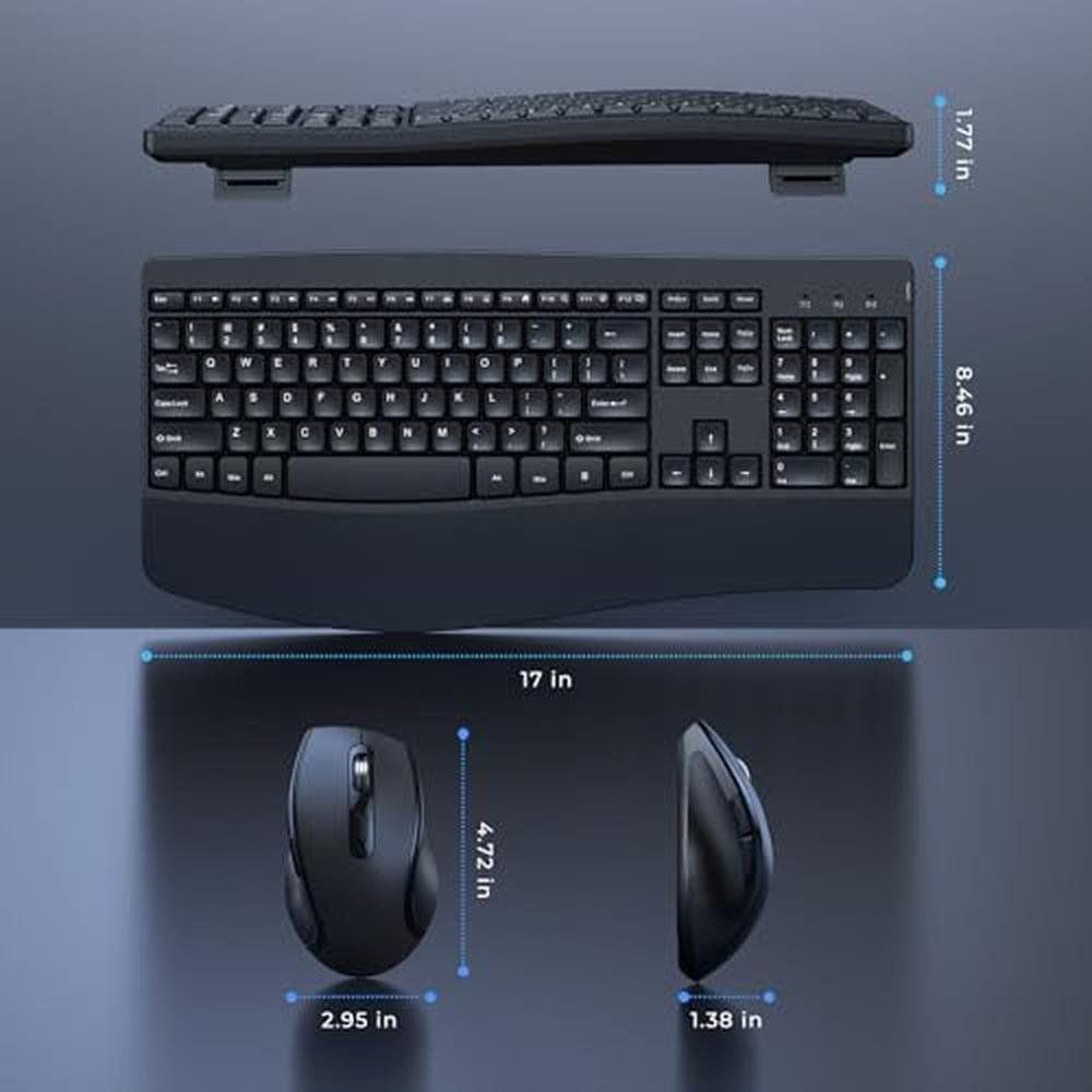 Ergonomic Keyboard | Wireless Keyboard and Mouse Combo Full Size Cordless with Palm Wrist Rest | Ultimate Comfort and Productivity