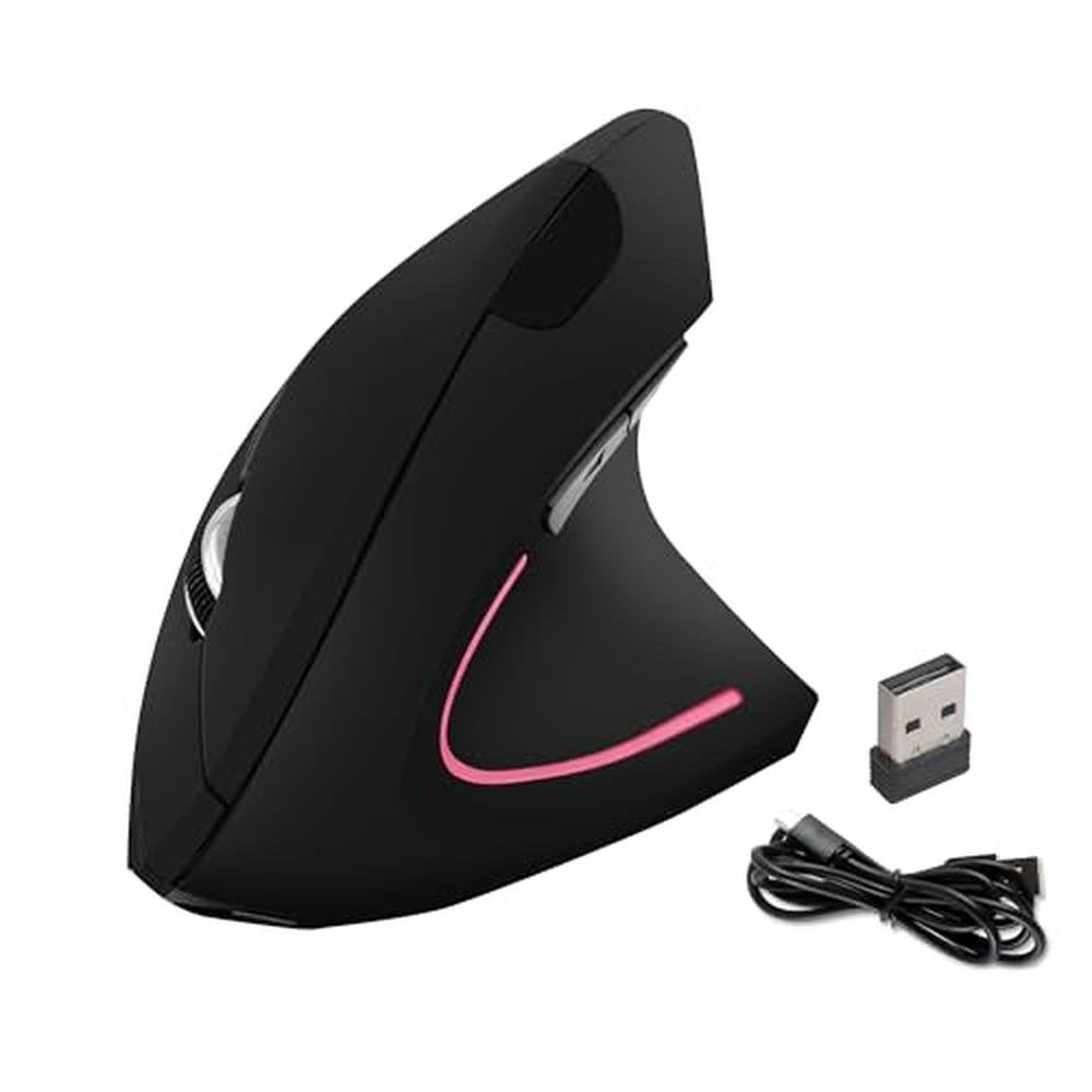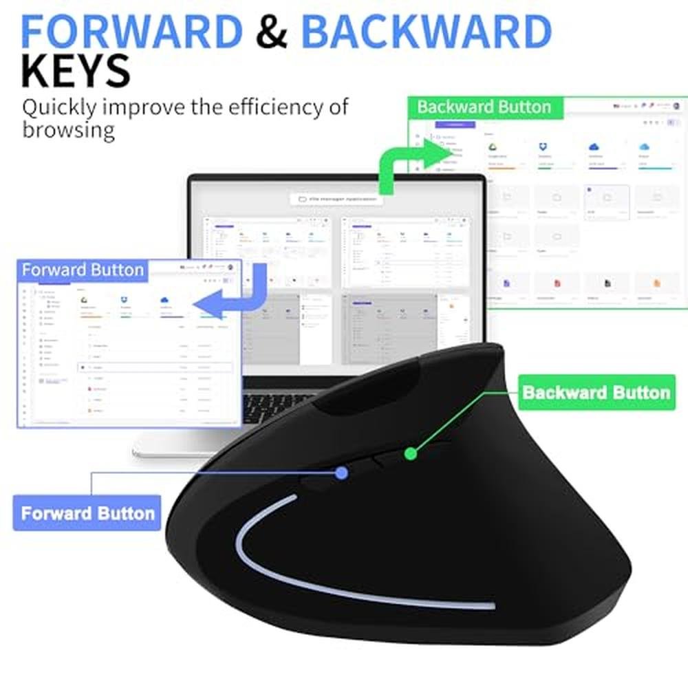 Ergonomic Mouse Wireless 2.4GHz & Bluetooth Right Hand Vertical Mouse with LED Light USB Receiver 6 Buttons Rechargeable Portable Optical Wireless Mice for PC Laptop Computer Desktop Mac Gifts, BlackFeatures: Ergonomic Design This wireless ergo mouse features an ergonomic design that conforms to the natural curves of the hand and positions the palm at an angle nearly perpendicular to the desk surface, effectively reducing hand fatigue caused by prolonged use. This ergonomic vertical mouse is ideal for office workers, designers, and others who use computers for extended periods. Bluetooth and 2.4G Dual-Mode Design This ergonomic wireless mouse for laptop supports both 2.4G USB wireless and Bluetooth dual-connection modes, allowing it to connect to up to three different devices simultaneously. This provides a powerful, fast, and stable connection with a maximum transmission range of 10 meters/33 feet. Rechargeable Function This wireless vertical mouse is equipped with a built-in 500mAh rechargeable battery, which can be charged using a Type-C charging cable, eliminating the need to purchase batteries. It enters power-saving mode after 60 seconds of inactivity and can be awakened by clicking the left or right buttons. Wide Compatibility This mouse vertical ergonomic is compatible with most operating systems, including Windows 7/8/10/XP/Vista/Linux/Mac OS, etc. This ergonomic bluetooth mouse is ideal for desktop computer, laptop, PC, MacBook, tablet, and other devices with USB ports and Bluetooth connectivity. Forward/Backward Buttons The Forward and Backward buttons on this computer mouse ergonomic are located at the thumb position, making it convenient for clicking and browsing. This provides greater convenience for web browsing, gaming, and prolonged office work. (Note: The Forward and Backward buttons are not compatible with the Mac OS system.) Specification:Material: ABSSize: 125*65*82mm/4.92*2.56*3.23inchConnection Methods: 2.4GHz wireless + BluetoothOperating Distance: 10MNumber of buttons: 6Battery: 500mAhCharging port: Type-cPackage contains:1 * Vertical Ergonomic Mouse1 * USB receiver1 * Charging Cable1 * ManualNotes:1. Please allow 1-3 cm difference due to manual measurement and 3-5 g for the difference between different colors.2. Due to the screen difference, the color may be a little different from what you expect, please allow it.Specifications & Details