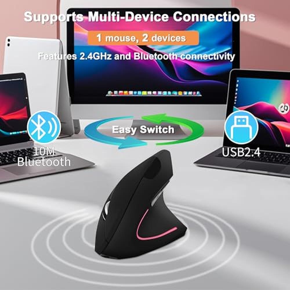 Ergonomic Wireless Mouse with 2.4GHz & Bluetooth Connectivity - Right Hand Vertical Design