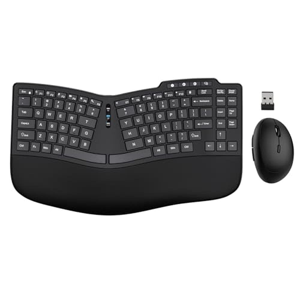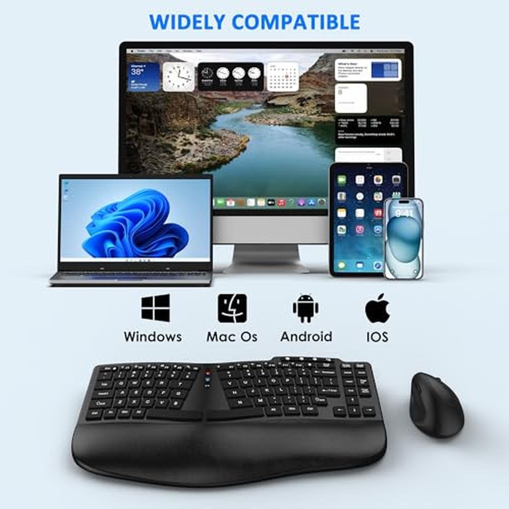 Ergonomic Wireless Keyboard Mouse Combo, Bluetooth/2.4G Split Design Keyboard with Palm Rest and 3 Levels DPI Adjustable Wireless Vertical Mouse, Multi-Device, Rechargeable, for Windows/MacBlack