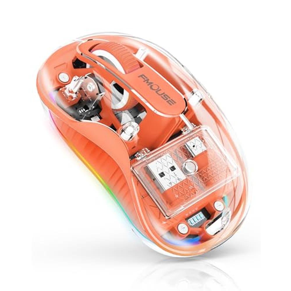 High-End Wireless Mouse | FMOUSE Stylish Transparent Wireless Mouse | Dual Bluetooth 2.4GHz Connectivity
