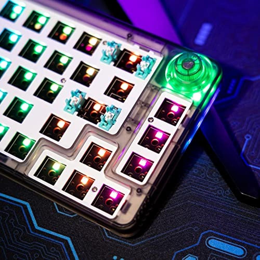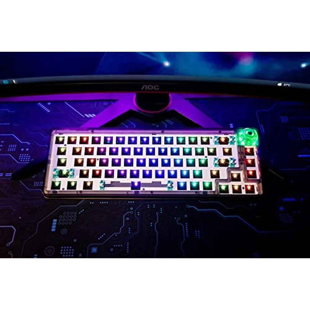 - RGB Backlight--Bottom Mesh Structure RGB Light & Side RGB Ligh: LK67 Keyboard kit make more than simple RGB backlight, it features a mesh structure at the bottom of the keyboard and side RGB lights design. The keyboard will be fully surrounded by amazing RGB effects. It will offer immersing gaming experience to you. The keyboard kit is not only practical, but also the perfect desktop decorations. Note: Keycaps and Switches are not included, you need to buy them seperately.