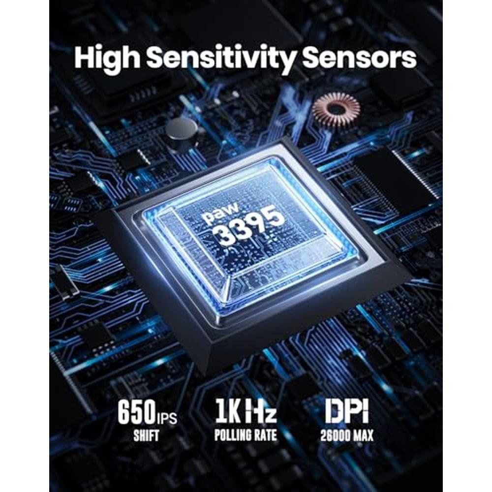 - The Gravastar Mercury M2 features a high-performance PAW3395DM sensor with 26,000 DPI for accurate and swift tracking