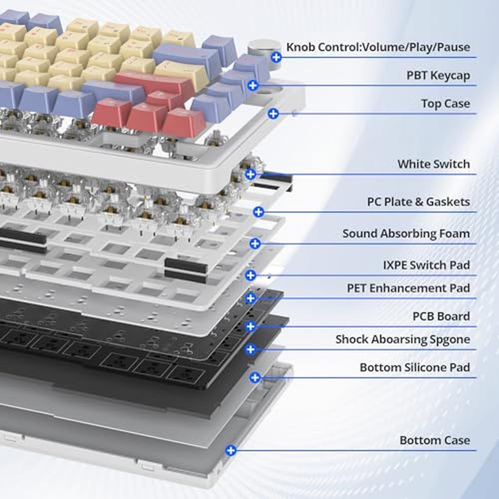 itastatur wired | iTastatur 75% Wired Mechanical Gaming Keyboard Hot Swappable Gasket Mount White Switch 82 Keys TKL NKRO | Premium Gaming Performance