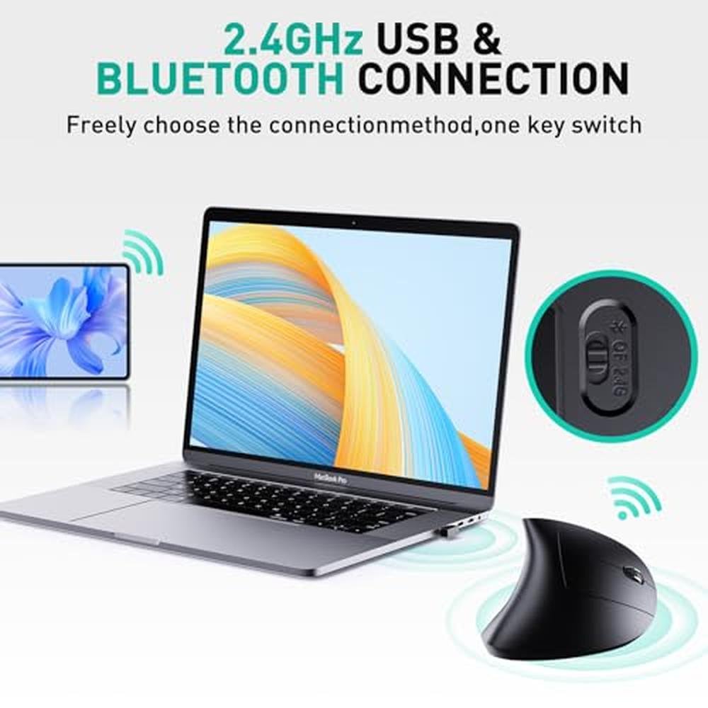 JYKEYMOUT Bluetooth Wireless Mouse - 2.4G Rechargeable Ergonomic Vertical Design for Laptop, PC, MacBook, Chromebook
