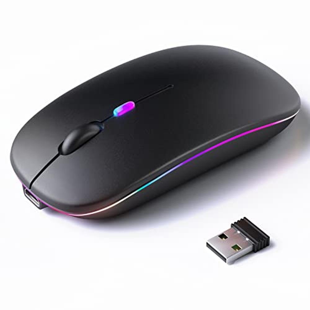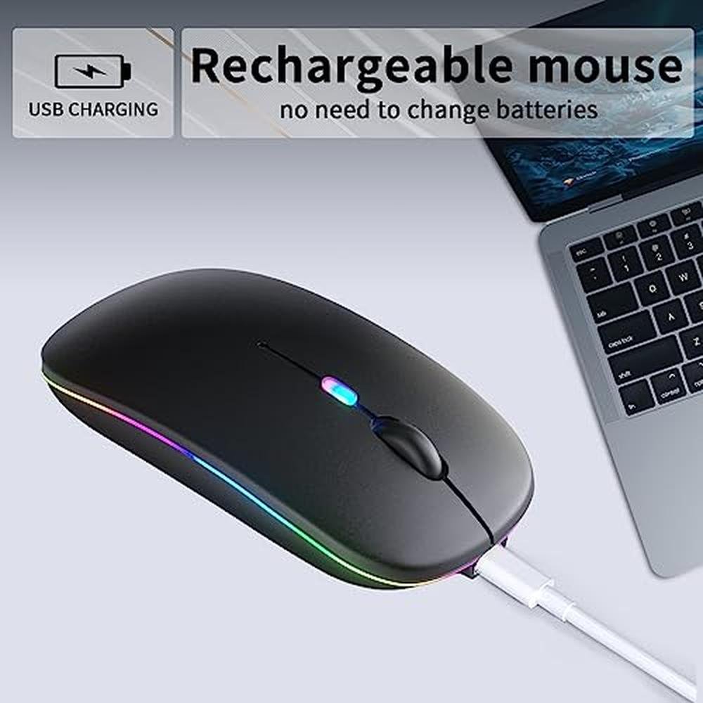 Premium Bluetooth Kanmabpc Wireless Mouse | Rechargeable, Silent, Dual-Mode Bluetooth 5.2 with LED Lights, Portable for Laptop, Desktop, Tablet - Black