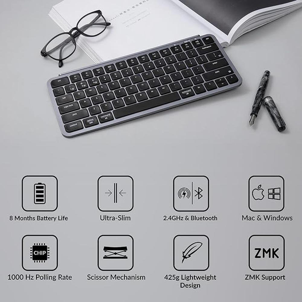 Keychron Slim | Keychron B1 Pro Ultra Slim ZMK Launcher Wireless Bluetooth 2.4 GHz Wired Connection Keyboard for Mac Windows Linux Gray | Luxury Innovation