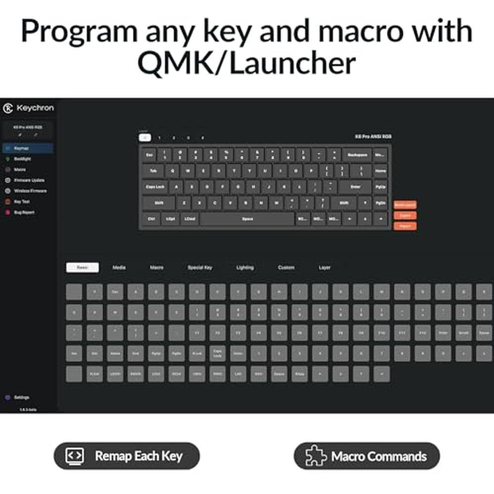 - The Keychron K6 Pro is an innovative custom wireless mechanical keyboard advancing typing experience to a new level. QMK/Launcher allows anyone to customize any key and macro with ease. Together with an upgraded typing sound and feel, and our flexible hot-swppable feature, the K6 Pro is leveraging limitless possibilities with premium typing comfort.