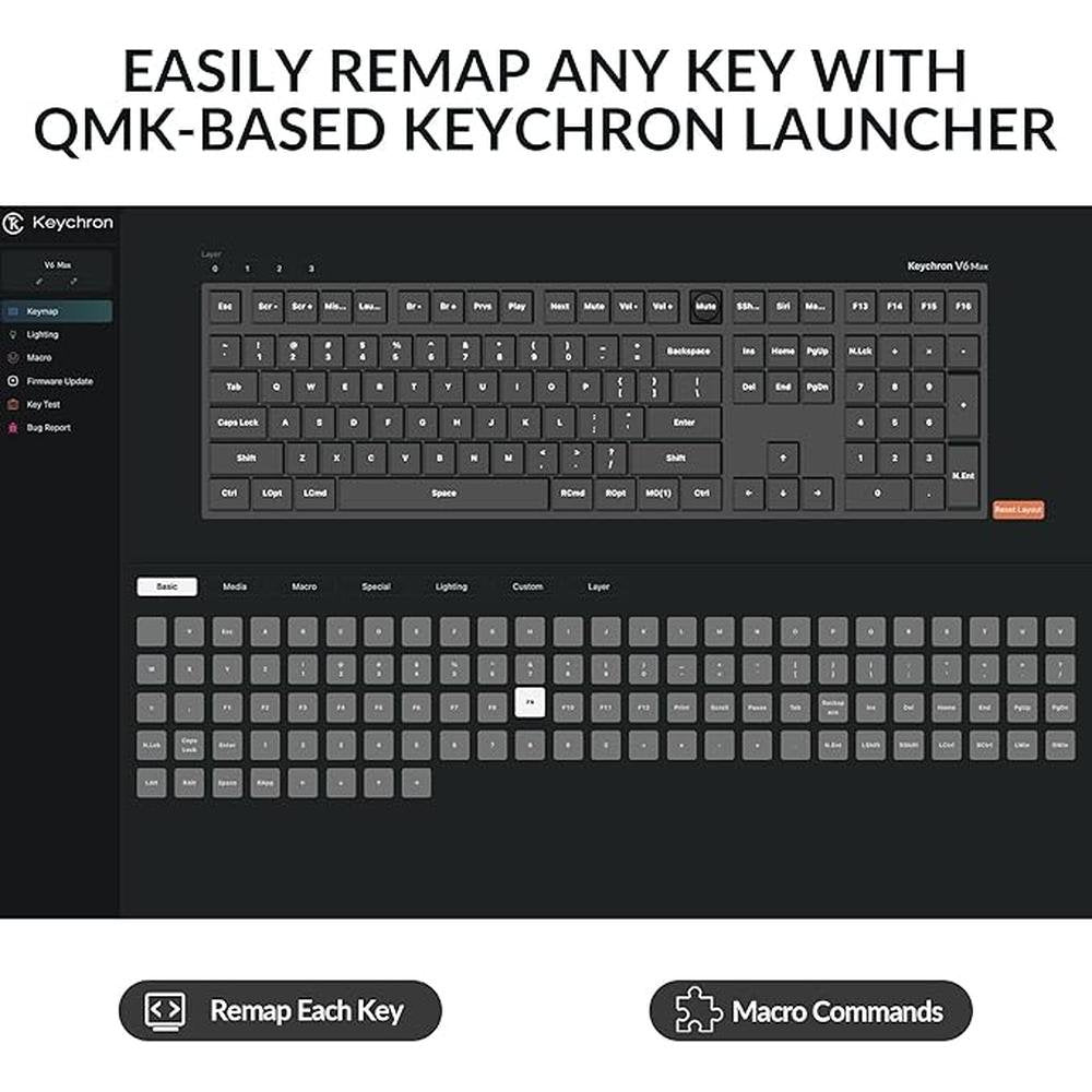 Keychron Custom | Keychron V6 Max Wireless Custom Mechanical Keyboard 2.4 GHz Bluetooth QMK Full Size Layout RGB with Hot Swappable Gateron Red Switch Compatible with Mac Windows Linux | Premium High-End Electronics