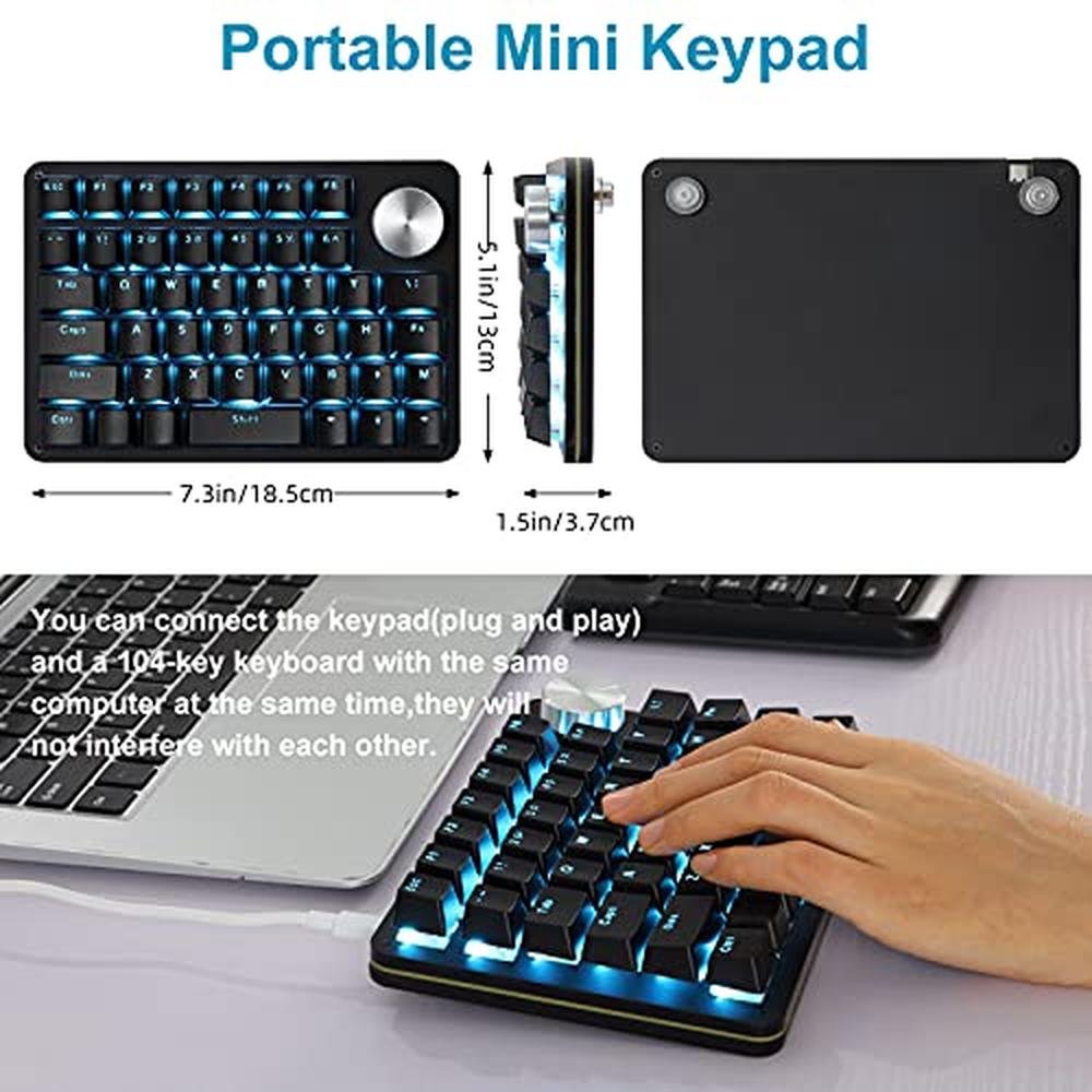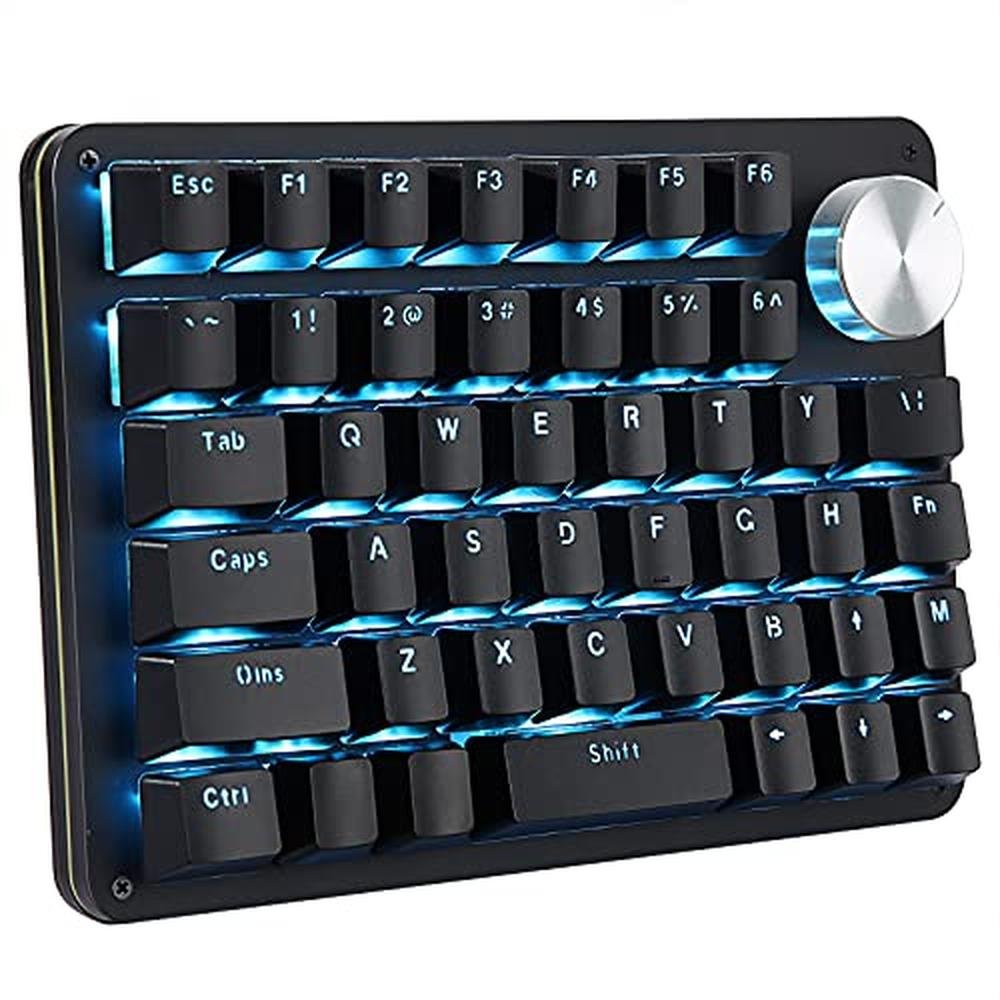 Koolertron One | Koolertron One Handed Mechanical Gaming Keyboard with 24 Macro Keys | 45-Key Fully Programmable Mini Keypad Blue Backlit Red Switches