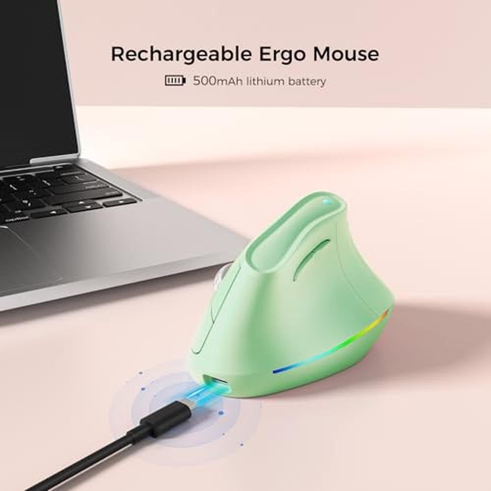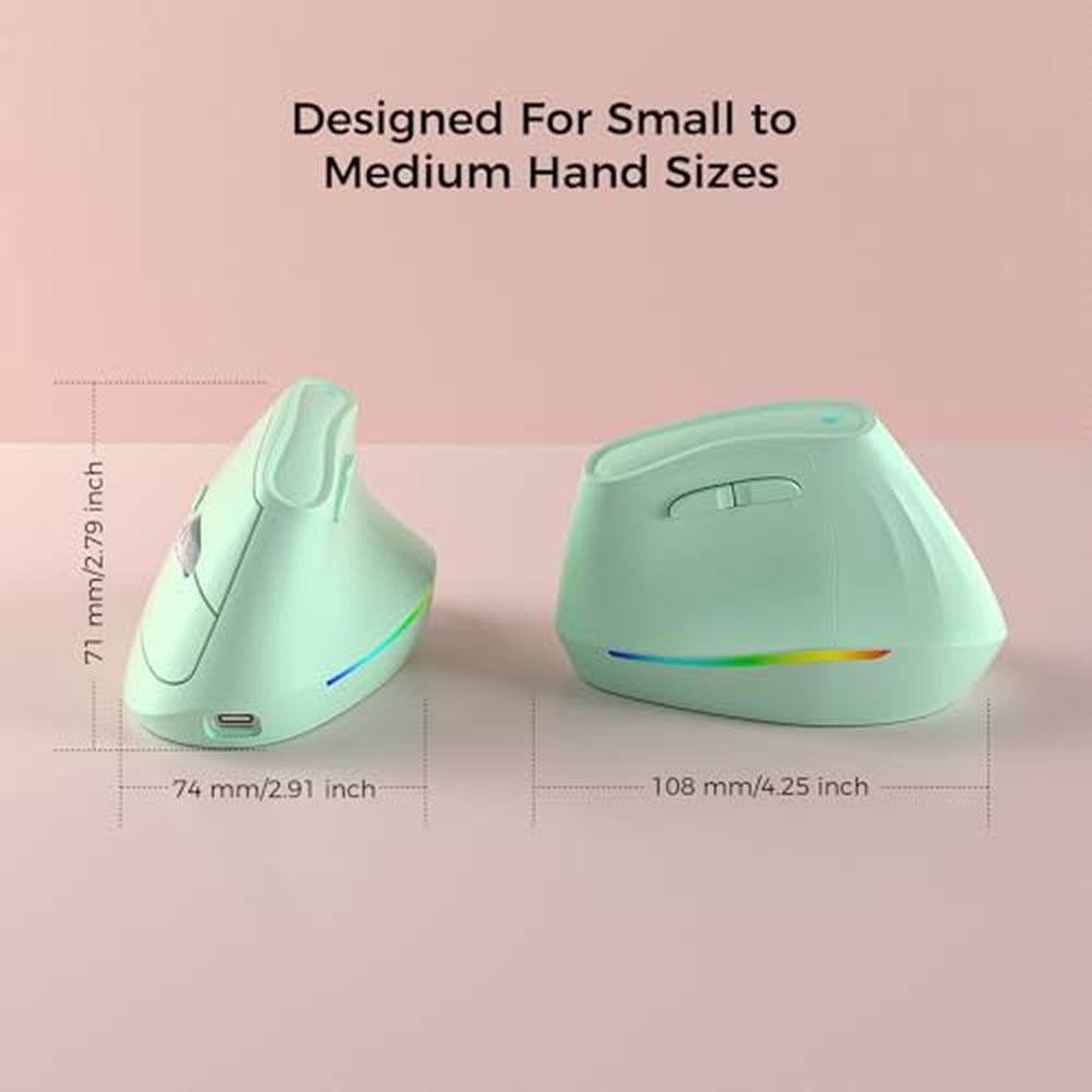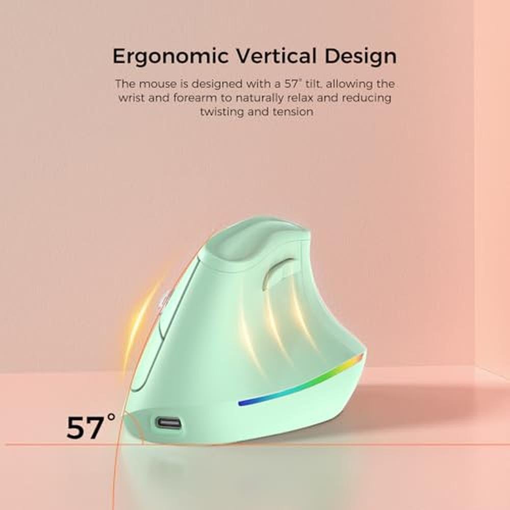 Ergonomic Excellence | KYSONA 57 Wireless Vertical Mouse | Rechargeable, Quiet Click, RGB Lighting