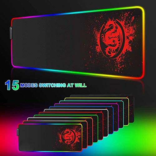 Mat Keyboard | Large Anime Dragon Extended Mouse Pad | High-Performance 15 Light Modes Gaming Mat