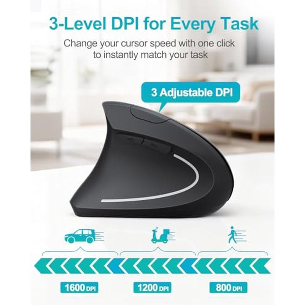 With 3 level adjustable DPI and multifunction buttons, this ergonomic mouse adapts to your needs. Convenient page back/forward side buttons let you navigate web pages with one click. For left-handers who want control, this carpal tunnel mouse works perfectly. Long-lasting battery and wide compatibility make this wireless mouse an ideal choice for your desktop, laptop, notebook, or MacBook.