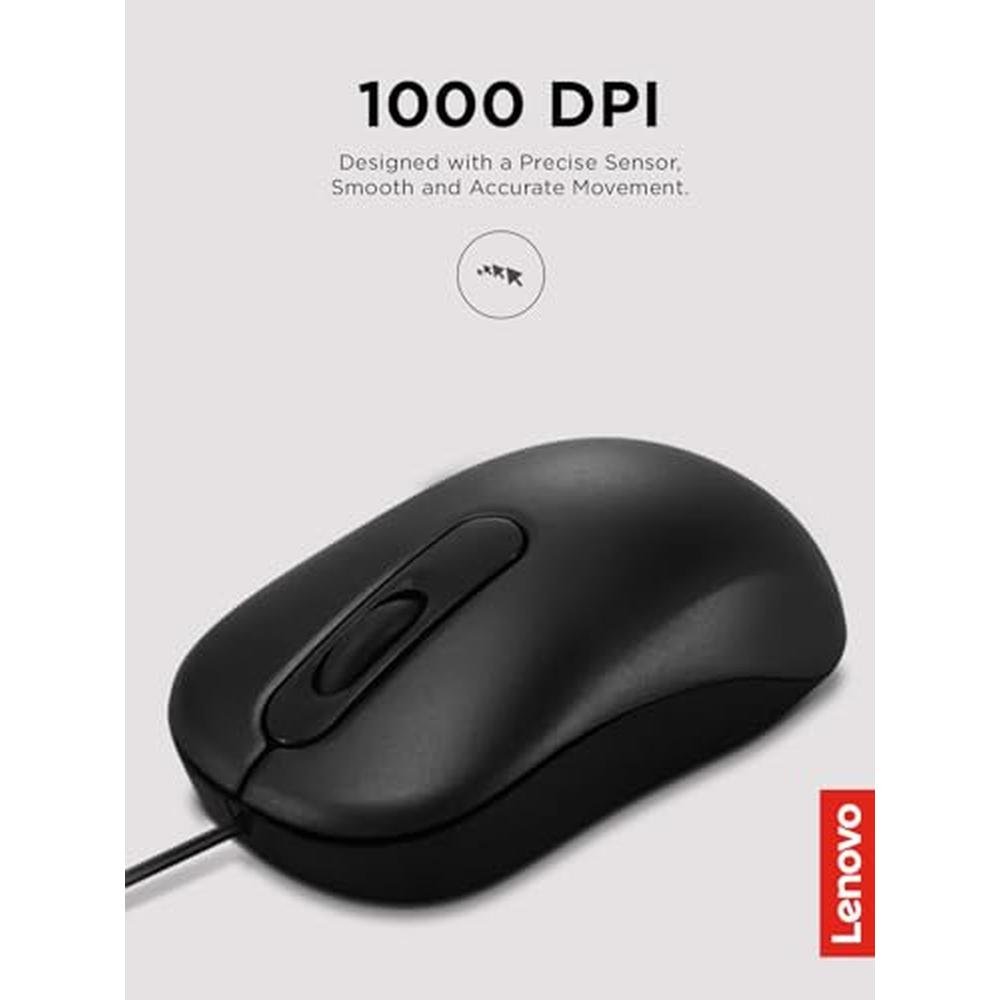 Premium Lenovo Wired Computer Mouse | Lenovo 100 Wired USB Computer Mouse | High-Precision Optical Sensor | Ambidextrous Design