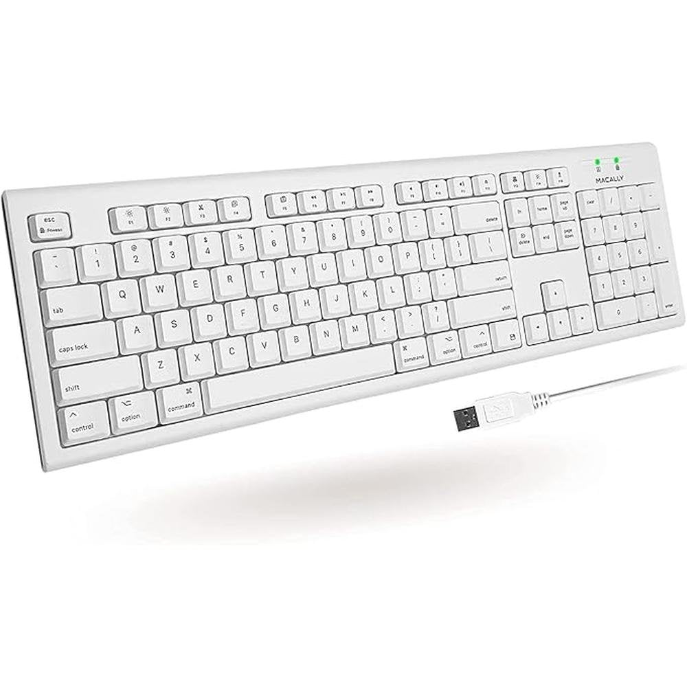Keyboard Desktop | Macally Full-Size USB Wired Keyboard for Mac Mini Pro iMac Desktop Computer MacBook Pro Air Desktop with 16 Compatible Apple Keyboard with Numeric Keypad Rubber Domed Keycaps Spill-Proof | Premium High-End Electronics