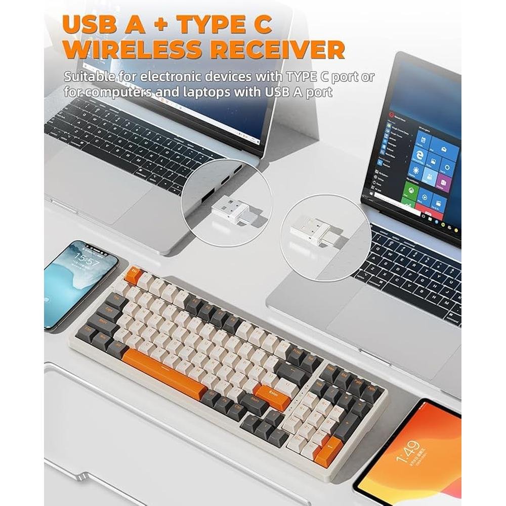 - Dual-Mode 2-in-1 Receiver: The Magic Refiner RK96 Wireless Mechanical Keyboard comes with a dual-mode 2-in-1 receiver, allowing you to switch between wireless and wired connections with ease, providing flexibility and convenience for gamers on-the-go.