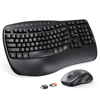 Indulge in the ultimate typing comfort and precision with the MEETION Ergonomic Keyboard and Mouse Wireless Combo, designed to provide a natural typing experience with wave keys that cradle your fingers, reducing strain and fatigue. The wireless keyboard features a built-in wrist rest, providing additional support and comfort for extended typing sessions. Paired with a 4 adjustable DPI optical mouse, this combo offers seamless navigation and precise control. With a reliable 2.4G USB receiver, you can enjoy wireless freedom and convenience. Compatible with computer, laptop, Windows, and Mac, this keyboard mouse wireless combo is the perfect solution for anyone looking for a premium typing experience.