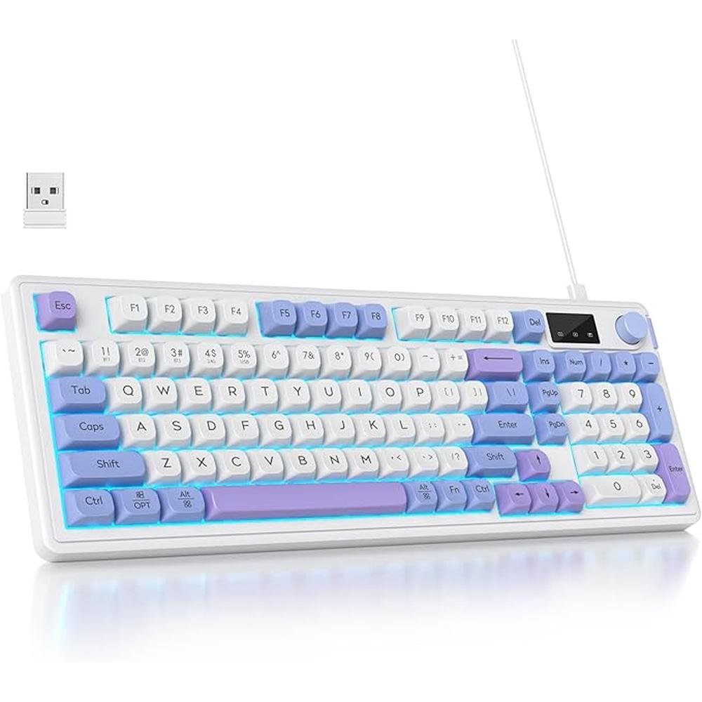 Owpkeenthy 96 Membrane Keyboard | Wireless 100 Quiet Mechanical Feeling Gaming Keyboard | Premium Gasket RGB Keyboard with Knob Number Pad Triple Mode Bluetooth 5.0 2.4G Wired for Laptop Desktop